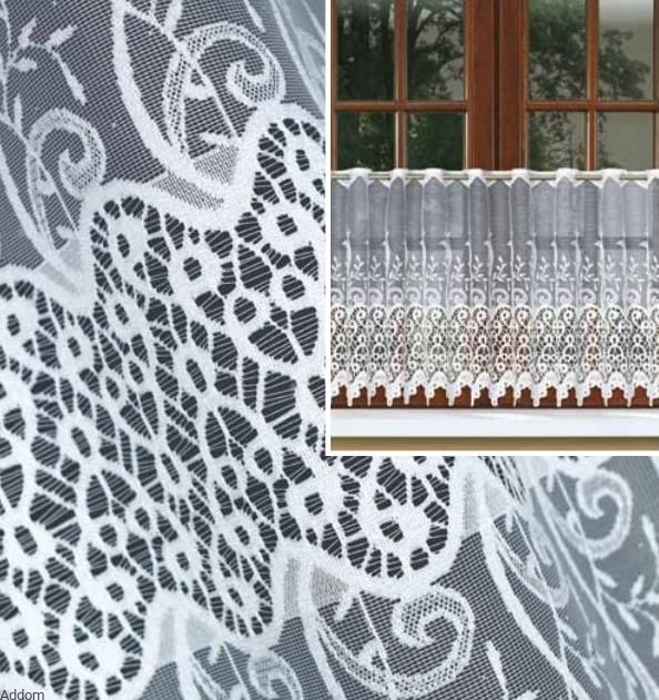 Piękne ażurowe zazdrostki z kolekcji Ażur Plus kaliskiej fabryki firan, na wysokość od 50 do 90cm z otworami na drążek. Dostępne są także firany od 120cm wysokości bez otworów, dzięki czemu można stworzyć sobie komplet okienny, firana z zazdrostkami, aby je znaleźć należy kliknąć na zakładkę z produktami powiązanymi.