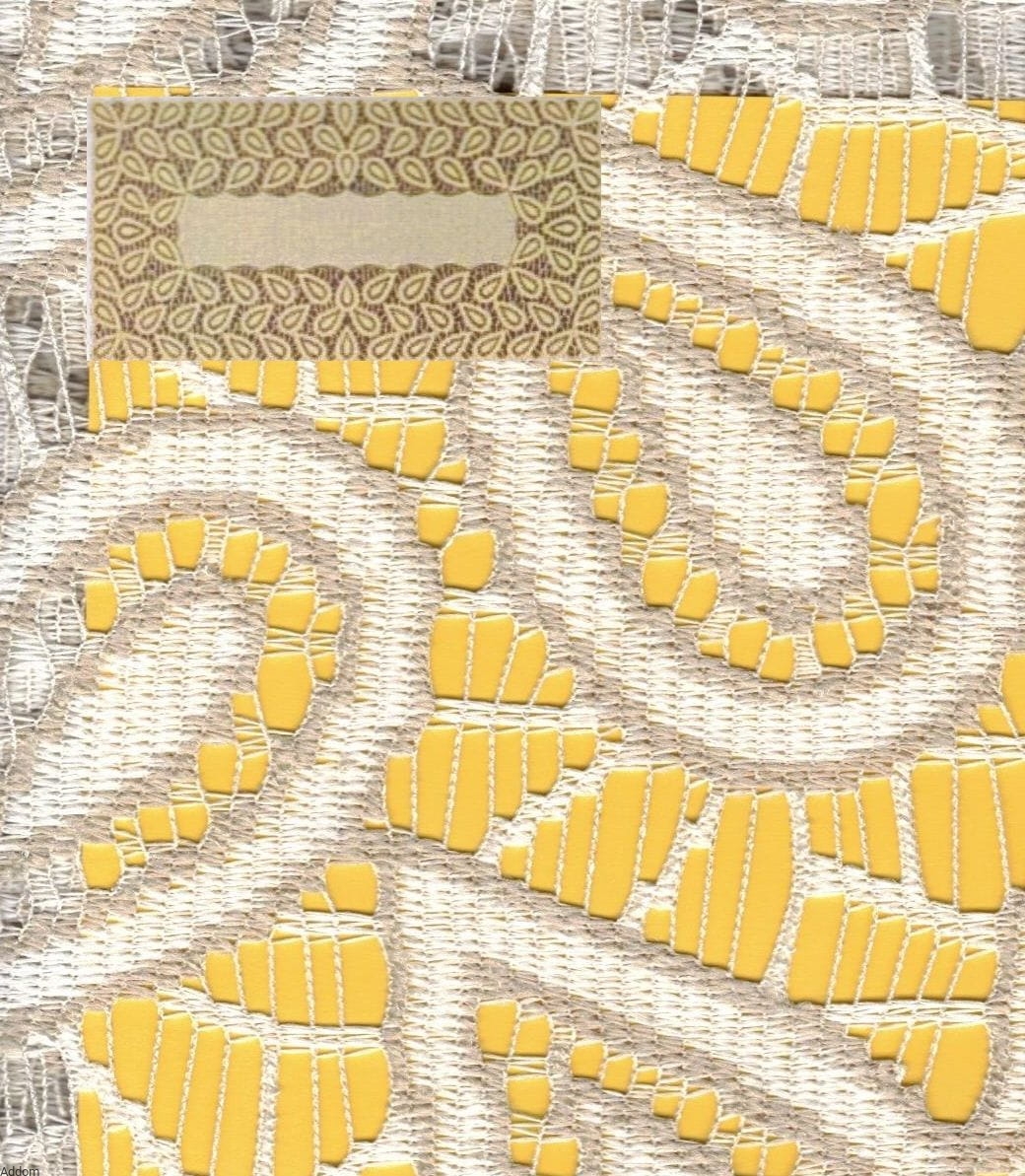Na zdjęciu na żółtym tle, ale im ono ciemniejsze, tym obrusik będzie się mocniej odznaczał. Ładnie zapakowany, może być prezentowym pomysłem.
