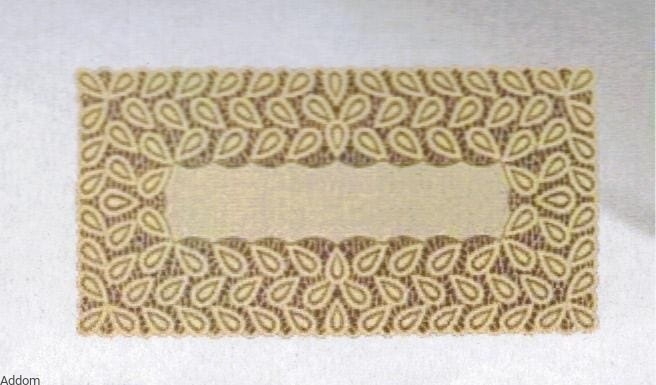 Obrusik leżący na blacie stołu bez zwisania zwany bieżnikiem, z nici w kolorze kremowym i złotym, żakardowy. Złota nić tworzy wyraziste wzory, o wypukłych brzegach, natomiast kremowa nić niżej położona tworzy tło i wypełnienie łezek. Bieżnik to połączone z sobą kropelkowate wzory, połączone z sobą i okalające jednolity środek. Proponowane są w 2 wariantach, 40x90 i 70x140 cm.