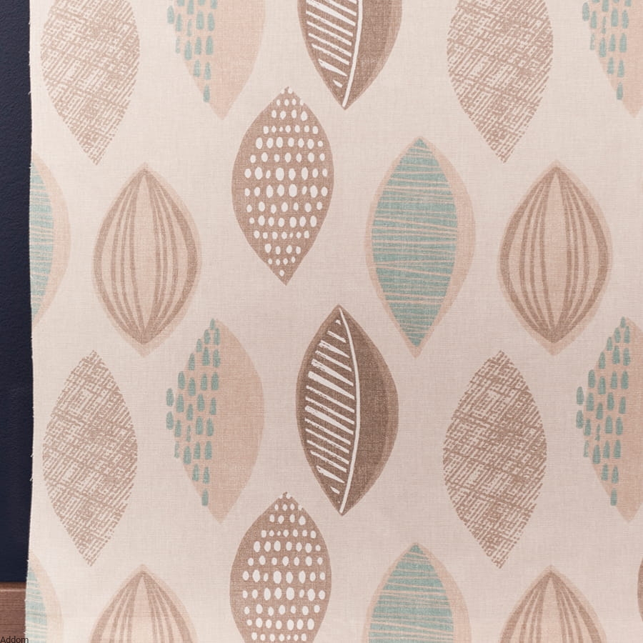 Materiał na zasłony w 3 spokojnych kolorach, popielatym, beżowym oraz rdzawym. Tkanina w duże liście, przypominające liście dębu. Materiał o szerokości 150 cm jest 100% bawełniany, zaciemniający, gruby, o gramaturze 218 gram, nadruk z jednej strony, z drugiej materiał jest bez nadruku. Bawełna zapobiega nagrzewaniu się tkaniny od słońca, lepiej niż poliester zatrzymuje nadmiar ciepła i nie oddaje go pomieszczeniom.