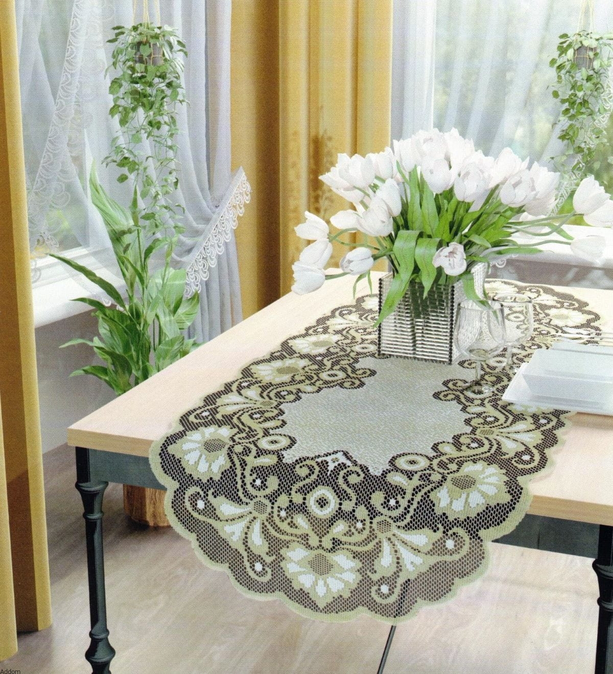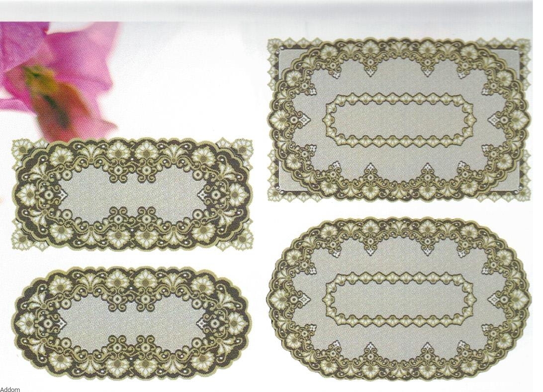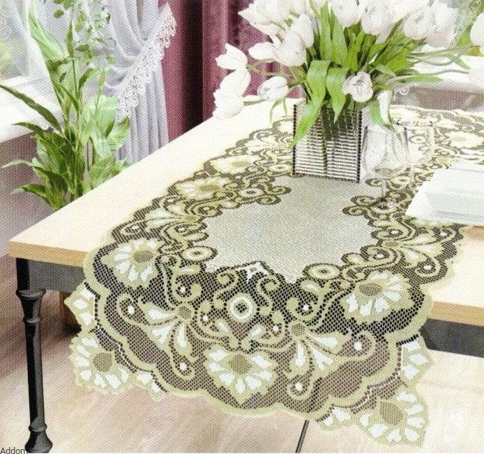 Bieżniki wykonane żakardem jako dwukolorowe z nici kremowej i złotej, lub białej, jako jednokolorowe. Bieżniki te przy zakupie mają kształt prostokątny, jednak są zaprojektowane tak, aby samodzielnie można było zmienić ich kształt, bez potrzeby obszywania - aby zaokrąglić rogi i otrzymać owal, wystarczy odciąć je nożyczkami. Wzór jest zaprojektowany tak, by każdy mógł z łatwością to samodzielnie zrobić. Opakowanie bieżników stanowią woreczki celofanowe. Obecnie dostępne są tylko wymiary 55x105 cm.