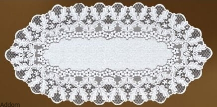 Bieżnik w kilku rozmiarach w liście dębu, dostępny aż w 4 rozmiarach i 2 kolorach, będący elementem kolekcji konfekcji stołowej w liście dębu. Dzianina typu żakard została wykonana z przędzy matowej, liście są dość grube a ażur wyrazisty.
