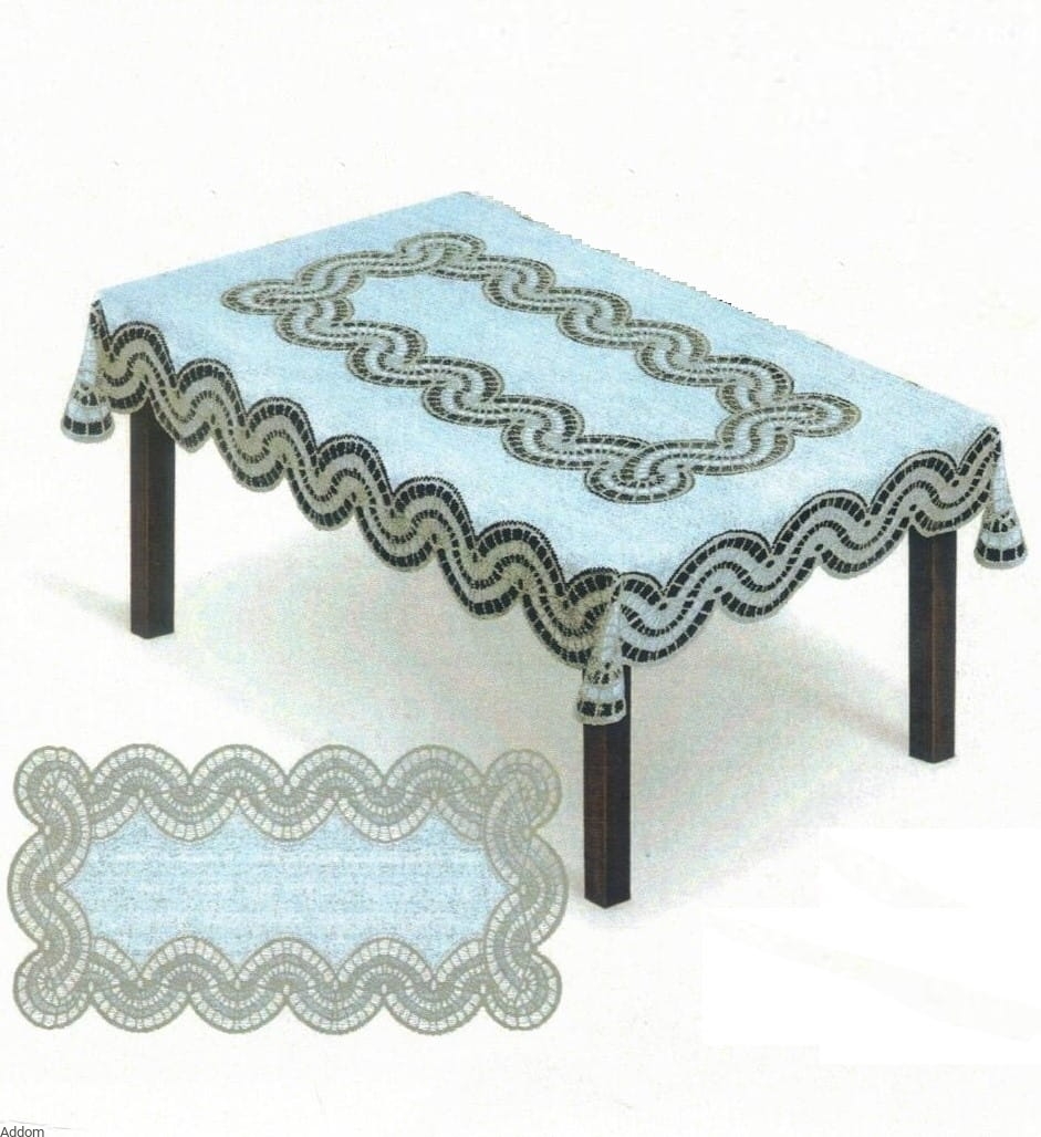 Dwukolorowe owalne bieżniki z Kalisza, produkcji HAFT Kalisz, rozmiar 50x100 cm, wykonane jako żakardowe dekoracje na blaty stołów i ław, jako uzupełnienie kolekcji konfekcji stołowej w tym samym stylu. Do wykonania bieżników użyto nici nabłyszczanych w 2 kolorach, które kontrastują lub uzupełniają się. Obrys stanowią figury geometryczne umieszczone na ażurze. Bieżniki żakardowe są bardzo praktyczną dekoracją, ponieważ pełnią funkcję ochronną dla powierzchni blatu, jednocześnie nie zakrywają całego stołu, są dość minimalistyczną dekoracją.