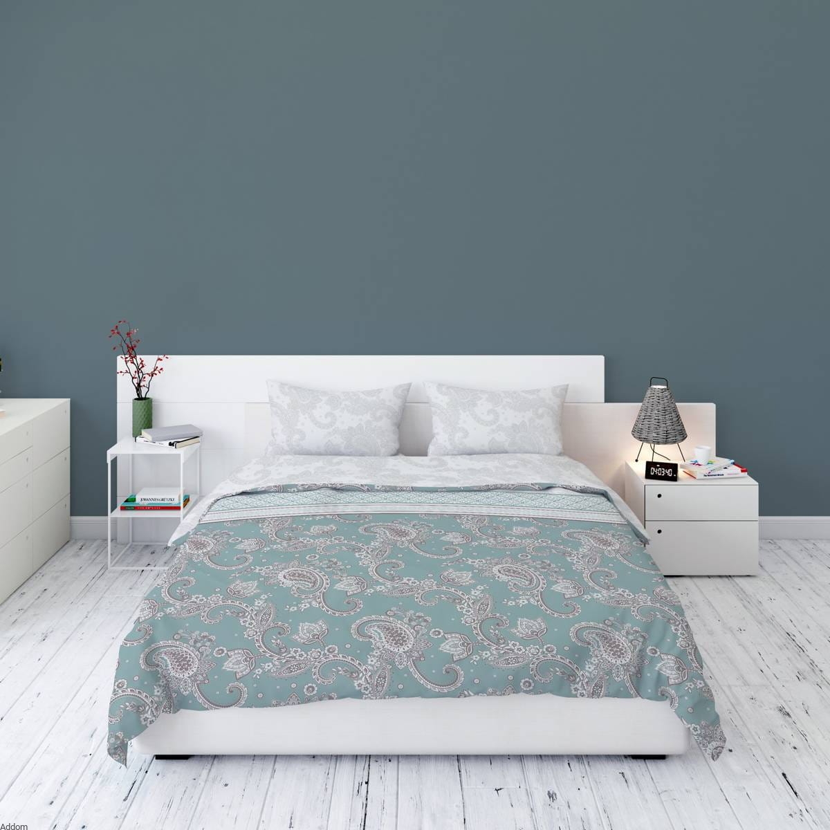 Wzór paisley składa się z zakrzywionych, łezkowatych kształtów, które przypominają zarówno wygięty liść, jak i łezkę. Jest to gęsto powtarzający się wzór, który tworzy efekt dekoracyjny na tkaninie, kojarzony z bogactwem orientalnych dekoracji. Wzór paisley jest uważany za klasyczną i ponadczasową ozdobę tekstylną, która dodaje stylu i charakteru projektom. Jest popularny zarówno w tradycyjnym, jak i nowoczesnym wzornictwie tekstylnym, zachowując swój unikalny urok i urozmaicając przestrzeń, dlatego polecamy naszą ekskluzywną pościel flanelową z tym wzorem do eleganckich sypialni oraz na elegancki prezent.