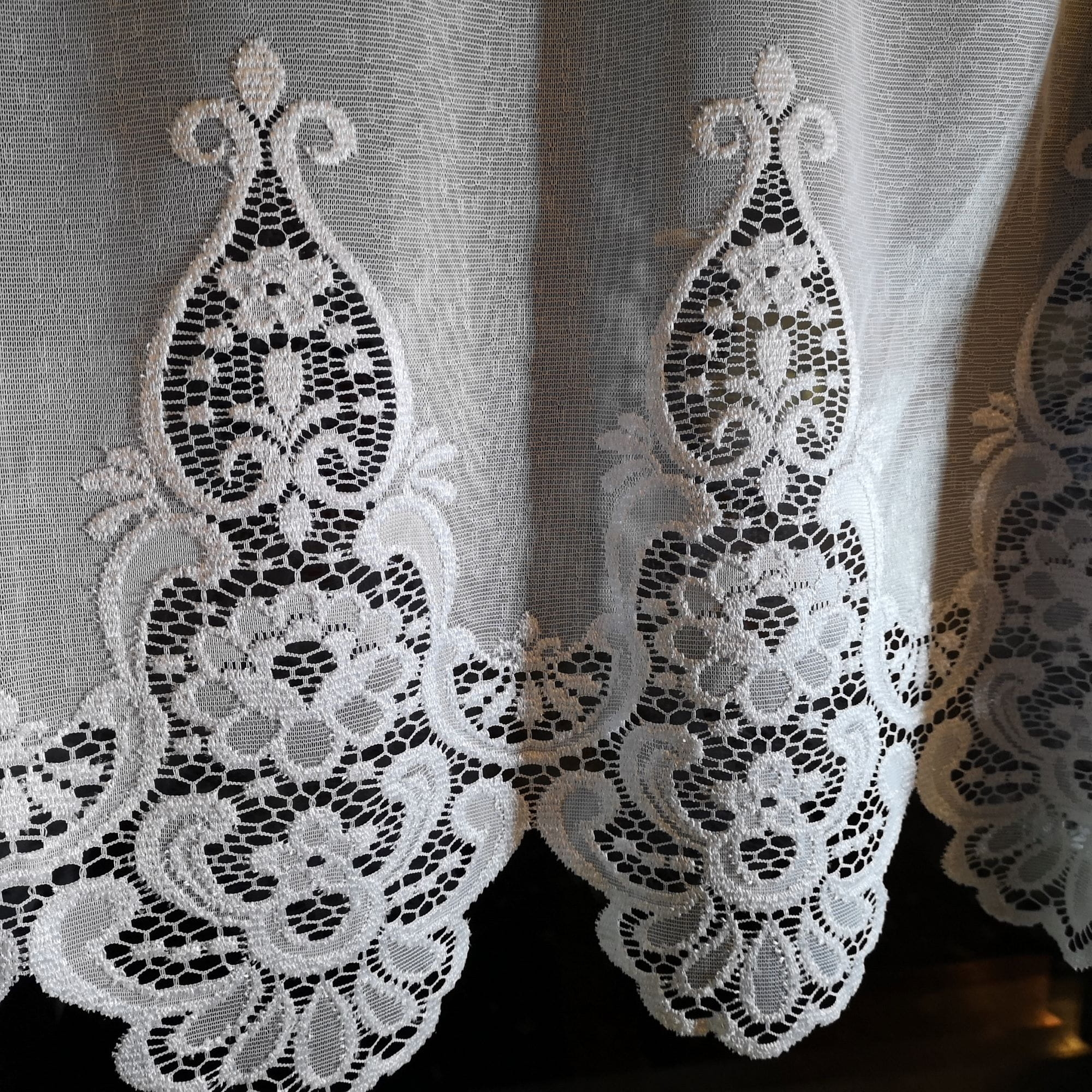 Ekskluzywne, białe zazdrostki żakardowe, które wykonane są tak, aby wyglądały jak tkaninowe, gdzie tło jest białe, gęste i nieprzejrzyste, z wzorami o grubym, wystającym wzorze o szerokich brzegach, wystających z tła, jak w kolekcji Lux Collection. Zazdrostki dopracowane są w każdym szczególe, wypukły wzór stylizowany jest na drogie, haftowane wzory haftu reliefowego, zachowując praktyczność żakardu i jego trwałość. Również górne otwory do przeciągania przez nie karnisza są pięknie wykończone. Biel jest śnieżna, a dzięki wybielaczom optycznym zazdrostki te odbijają więcej światła do pomieszczenia, niż otrzymują, są więc wielce polecane do ciemnych pomieszczeń i północnych okien.