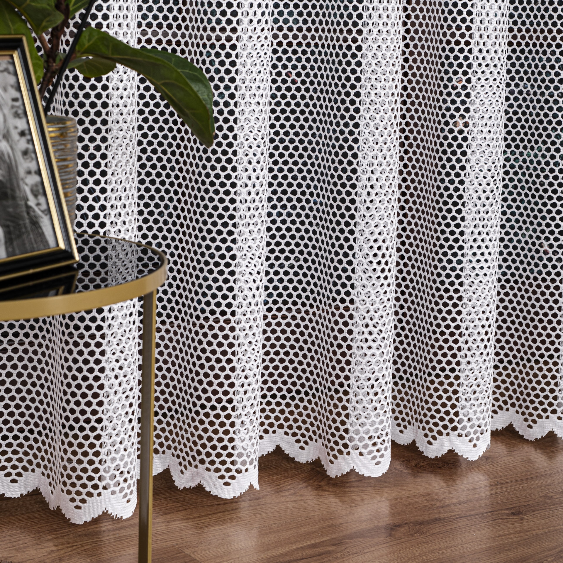 Firany w grube oczka rozmieszczone po całej firanie. Materiał na firany to żakard, wysokość firan 250 lub 180 cm. Dół z delikatnym podkreśleniem i subtelną falą. Firany tego typu nie wymagają prasowania, są minimalistyczne i bardzo praktyczne. To firany idealne na lato jak i zimę, bowiem są przepuszczalne dla powietrza i nie utrudniają widoczności od wewnątrz na to, co mamy za oknem.