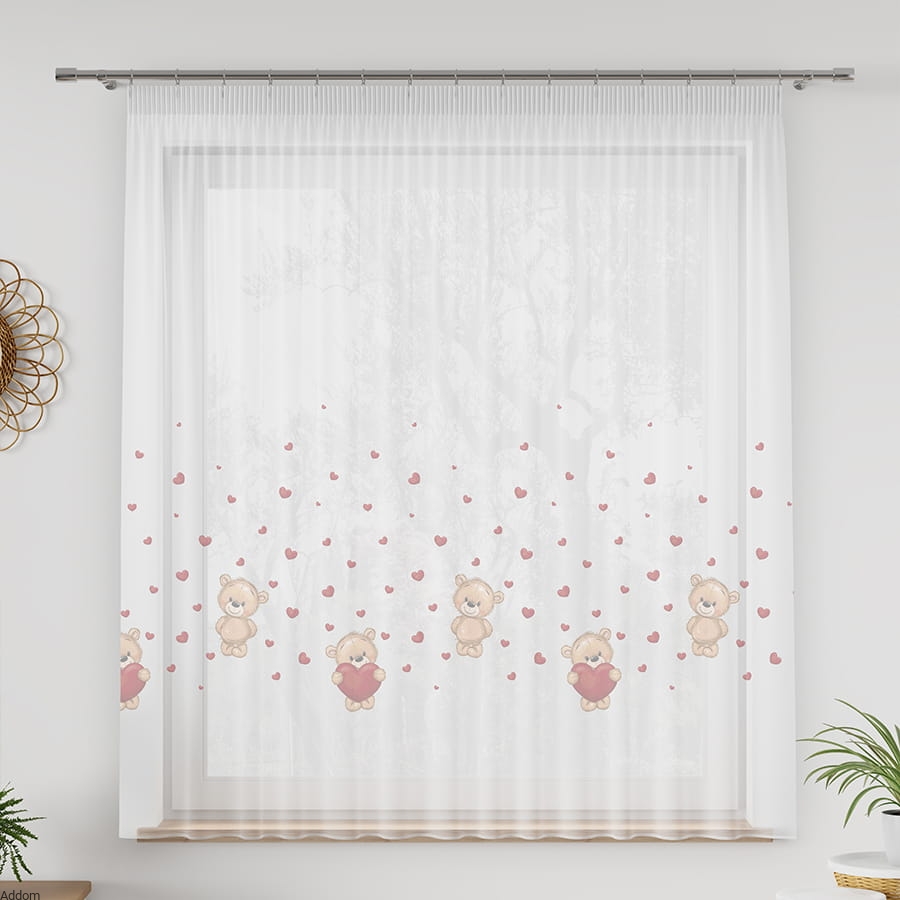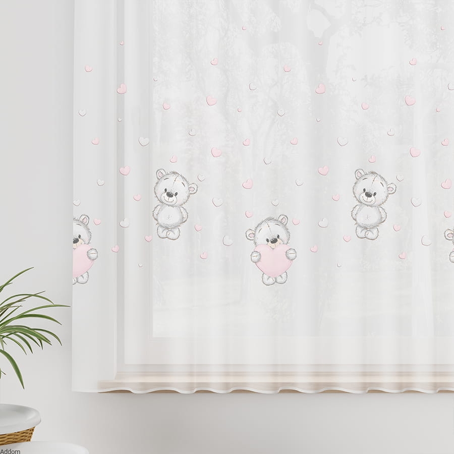 Firanki do pokoju dziecka, bogato drukowane na Zagęszczonej siatce, przedstawiające motylki w tęczowych kolorach. Firanki są sprzedawane na metry, a do nich można też kupić widoczne na zdjęciach zasłony metrażowe. Dołem obciążająca ołowianka, wysokość od 150 do 230 cm.