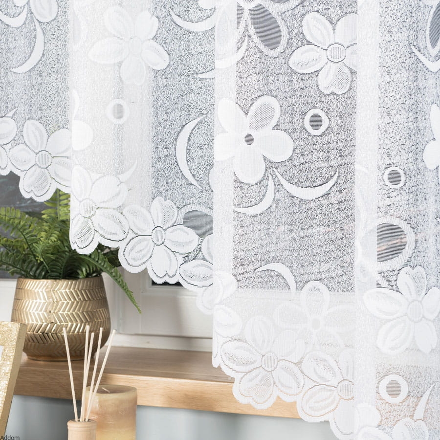 Wzory wykorzystywane w firanach żakardowych o splocie pajęczynkowym mogą być różnorodne - od delikatnych, subtelnych motywów kwiatowych po bardziej geometryczne i abstrakcyjne kompozycje. Każdy wzór jest starannie zaprojektowany i precyzyjnie wpleciony w tkaninę, co nadaje firanom unikatowy charakter.