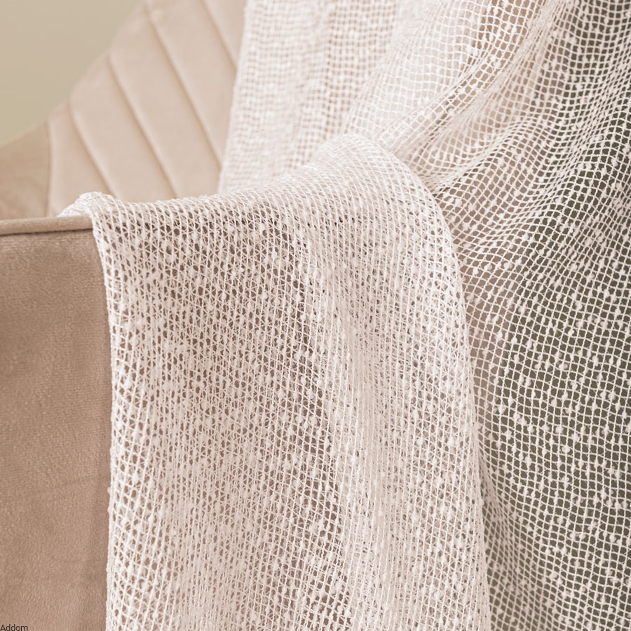 Firany bucle dostępne są w formie metrażu o wysokości 300 cm, czyli są wystarczająco wysokie, by pozwolić dostosować długość firan do własnych potrzeb. Możesz je skrócić lub wydłużyć, aby idealnie pasowały do Twojego okna. Firany te mają wplecioną złotą lub srebrną grubą nić, która nieregularnie wystaje, tworząc charakterystyczne dla bucle węzełki przędzy.