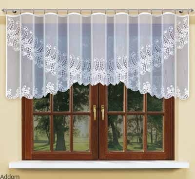 Firanki żakardowe kaliskie, z matowego żakardu, o bardzo intrygującym, półkolistym wzorze, przypominającym nieco rustykalne szlaki ludowe, ale w dość nowoczesnej formie, dlatego też na krosna użyto matowej przędzy, która jest bardziej kojarzona z dawnym stylem niż nabłyszczana, kojarzona ze stylem epoki industrialnej. Wszystkie firanki mają 300 cm szerokości przed umarszczeniem ale oferowane są różne wysokości tych firan. Ciekawie będą też wyglądać dwie firany powieszone obok siebie, co stworzy dodatkową falę, ale na to jest potrzebny karnisz blisko 300 cm długości, bowiem firanki po zmarszczeniu będą mieć minimum szerokości 150 cm.