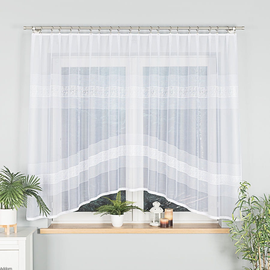 Z tego modelu dostarczyć możemy także firany cięte z metra, proste dołem, krótkie i długie, więc można z nich stworzyć ciekawe kombinacje wzornicze do okien, łącząc firanki gotowe z metrażowymi.