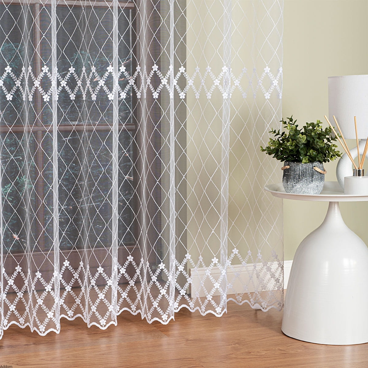 Kupując te firany dodasz do wnętrza elegancji i wyjątkowego charakteru. Dzięki firanom haftowanym w romby i kwiaty ożywisz wnętrze. Te wyjątkowe firany łączą klasykę z nowoczesnym wzornictwem, wprowadzając do pomieszczenia subtelną harmonię i wyrafinowanie.