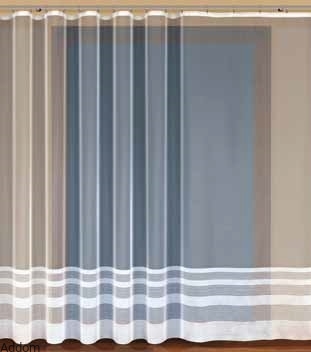 Firanki w drobne paseczki umieszczone dołem firany, w formie kilku cienkich pasków, zgrupowanych po kilka co paręnaście centymetrów, zajmujących dolne kilkadziesiąt centymetrów firanki. Design minimalistyczny, uniwersalny, polecany do nowoczesnych aranżacji. Firanki te oferujemy w 3 wersjach wysokości. Produkcja kaliska.