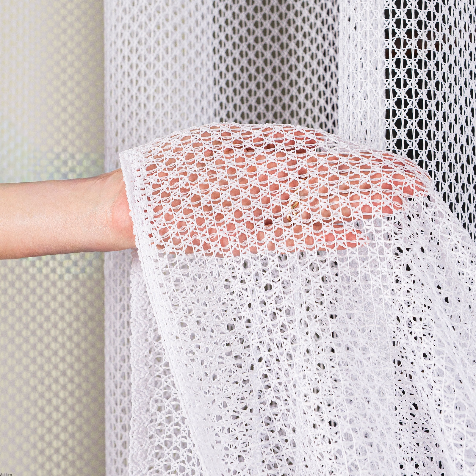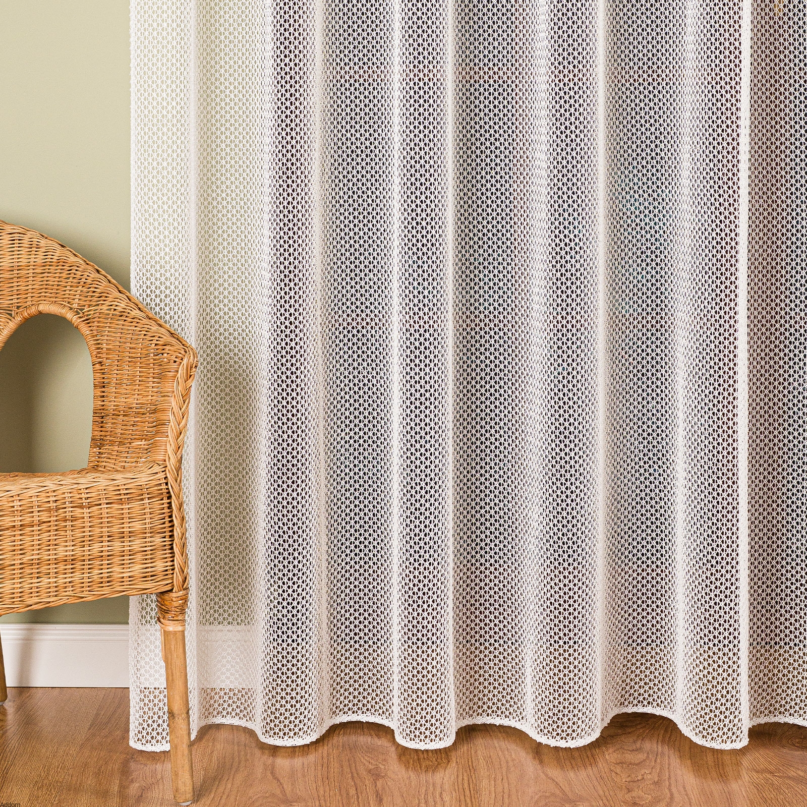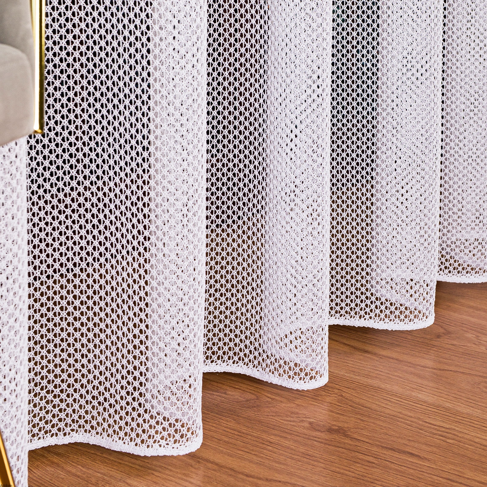 | Rodzaj materiału na firany | gruby żakard o splocie szydełkowym |