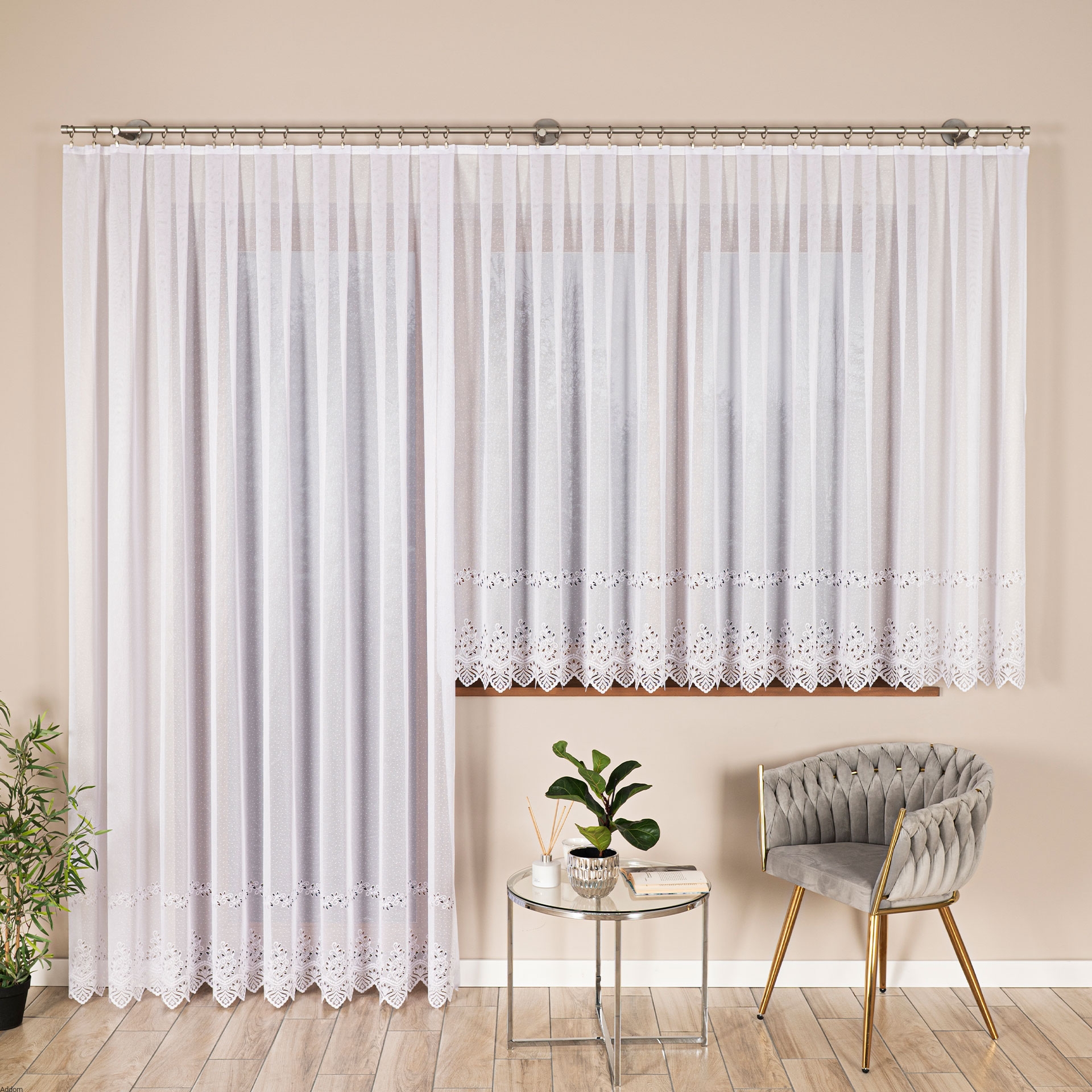 Firanki żakardowe uniwersalne, gotowe do zawieszenie, z prostym dołem, to elegancka i praktyczna ozdoba, łącząca klasyczny wdzięk z nowoczesnym design. Firany wykonane zostały z wysokiej jakości nici poliestrowej, trwalej i bardzo białej, a żakardowy splot to synonim trwałości oraz niepowtarzalnej estetyki.
