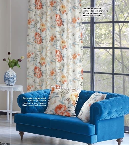 Zasłony te nocą są dobrą ochroną przed widokiem i lekką ochroną przed światłem za dnia. Materiał, z którego są uszyte można też u nas kupić na metry, posiadamy też w ofercie sklepu poszewki dekoracyjne z tego materiału.