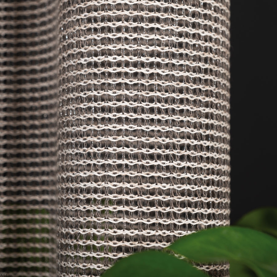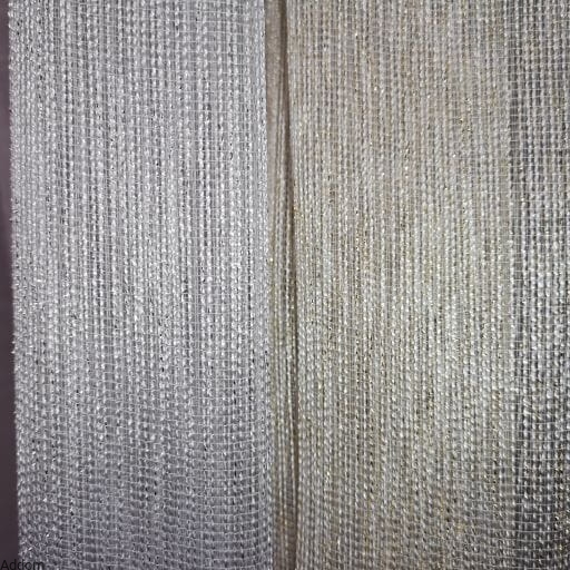 Siatka wykonana z 2 rodzajów przędzy - grubej i matowej, oraz cienkiej i błyszczącej, srebrnej lub złotej, o dość dużych oczkach. Firany te są solidne, nić podstawowa gruba i biała, a nić błyszcząca, dodająca blasku jest do wyboru srebrna lub złota. Dodatek złotej nici sprawia, że ta wersja wydaje się być kremowa. Dół wykończa ołowianka. Wysokość 310 cm.