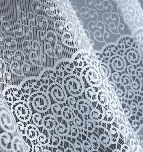 Dość grube firany z szerokim szklakiem biegnącym po łuku - w formie zygzaczków, ale o prostym dole. Wzory w wariancie krótkim znajdują się na samym dole firany, w formie rzędów spiralek i kółeczek i sięgają połowy firany, w wariancie długim - do samej podłogi.