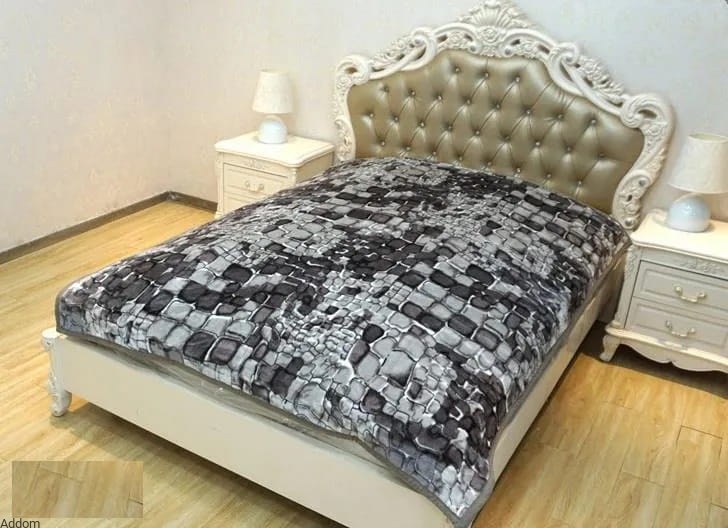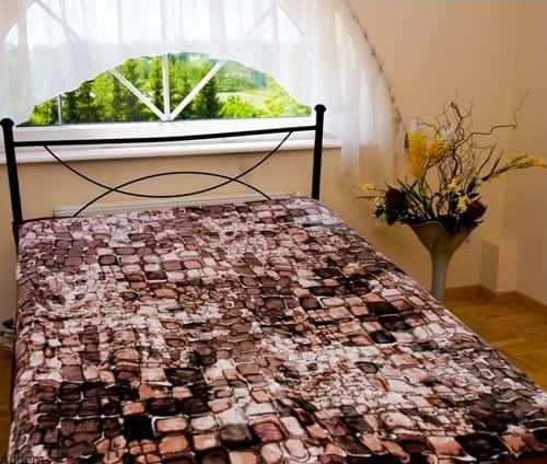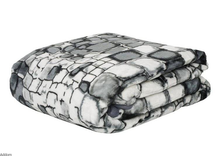 Puszyste koce o wyglądzie narzut, z grafiką inspirowaną wzorami typu mozaika, kamienie. Technologia barwienia sprawia, że grafika jest żywa i trwała, idealnie odwzorowuje deseń. Tonacja niebieska, biała i granatowa. Szeroka obwódka wykończa koc na obrzeżach, co daje wrażenie narzuty, jednak są to koce strzyżone, o miękkim włosiu, pulchniutkie. Ponadto na uwagę zasługują opakowania produktu, będące eleganckimi walizeczkami. Koc taki z powodzeniem posłuży jako elegancka narzuta, a gdy zajdzie potrzeba otulenia się, spełni swoje funkcje ocieplające, gdyż jest miękki i dobrze przylega do ciała. Wymiary koca 160x210, brzeg naokoło obszyty jest szarą lub beżową matową lamówką.