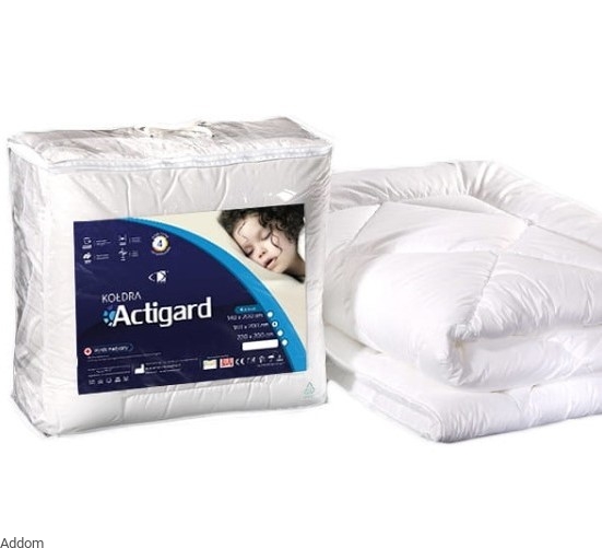 Kołdry antybakteryjne z poszyciem z bawełny, białym, pikowanym w romby. Wnętrze kołdry stanowi sztuczne wypełnienie antybakteryjne certyfikowane. Kołdra jest kołdrą medyczną, posiada wymagane certyfikaty: certyfikat bezpieczeństwa tkanin tekstylnych STANDARD 100 by OEKO-TEX®, gwarantujący, że użyte do produkcji tkaniny nie zawierają produktów szkodliwych dla człowieka w ilościach przekraczających normę, certyfikat wyrobu medycznego, oraz certyfikat antybakteryjności, dlatego polecana jest alergikom i osobom z problemami zdrowotnymi. Kołdry te można prać w pralce w temperaturze do 90 stopni, a do kołder można również kupić u nas poduszki antybakteryjne.