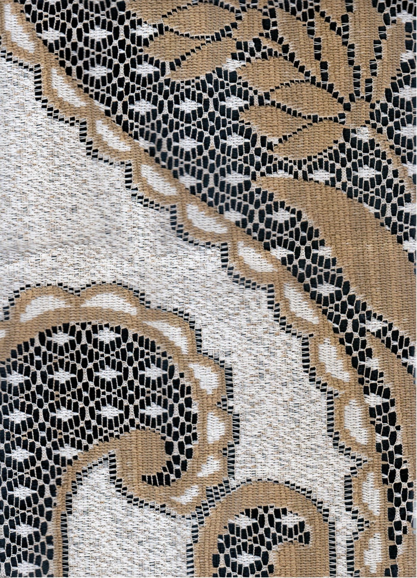 Zdjęcie główne zajmuje wersja oliwkowa, oznakowana jako jasna oliwka/ciemna oliwka. Jest to wersja oliwkowa, gdzie kontrast stanowi lekko oliwkowe tło z mocnym, ciemnym, ale o złotym odcieniu wzorze. Jaśniejszą wersją jest wanilia/oliwka, gdzie zdobienie jest takie samo, ale tło jaśniejsze, w wersji srebrnawego ecru. Wersje brązowe są aż 3 - brunat/brąz to złotobrązowe tło z ciemnym, brunatnym wzorem. Podobny do niego jest kolor kawowy/brąz, o tym samym zdobieniu, ale tło jest mniej żółte, brąz tła jest ciemniejszy niż w wersji brunat/brąz. Wersją brązową jest też brunat/oliwka, będący kombinacją wersji brązowej i oliwkowej, gdzie tło jest złotym brązem, a wzór złotą oliwką. Model ten ma najmniejszy kontrast między wzorem a tłem i wygląda jak złoty.