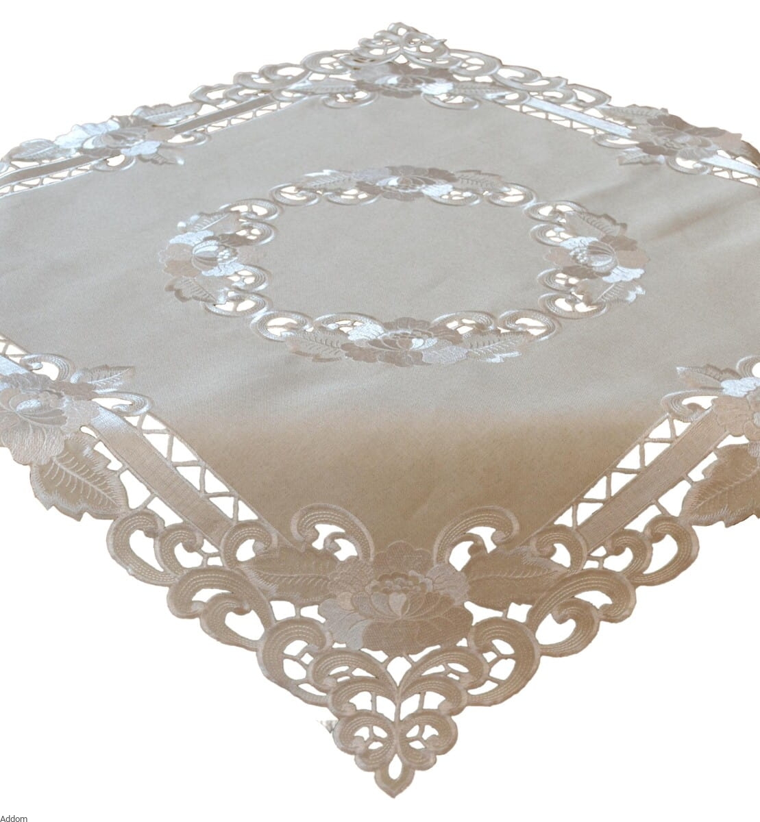 Kwadratowy obrus z haftem Richelieu