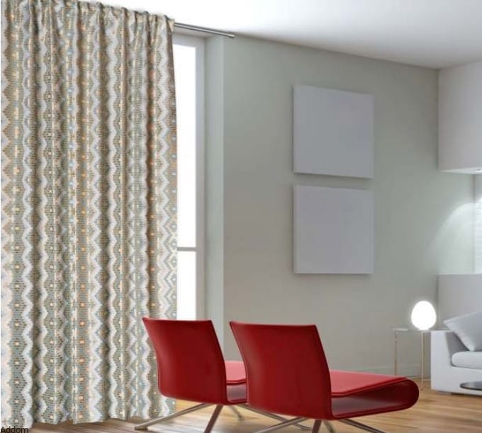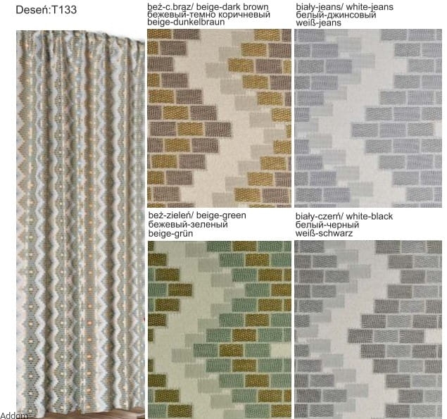 Materiał na piękne zasłony o złotych lub srebrnych wzorach z połyskiem, które w formie cegiełek układanych jak mur, tworzą zygzaki pionowe, lub poziome, jeśli tkaninę zastosujemy odwrotnie.Wzór z bliska wyraźnie pokazuje cegiełki, jednak z daleka wzór wygląda dość egzotycznie, jakby pochodził z krainy Majów, i jeszcze ten połysk złota, na spokojnym, naturalnym tle. Z tkanin tych można wykonać poszewki, aby uzupełnić pomieszczenie pasującymi do siebie tekstyliami. Materiał z kolekcji Górskie Szklaki, możliwe, że inspirowany właśnie szklakami Południowej Ameryki...