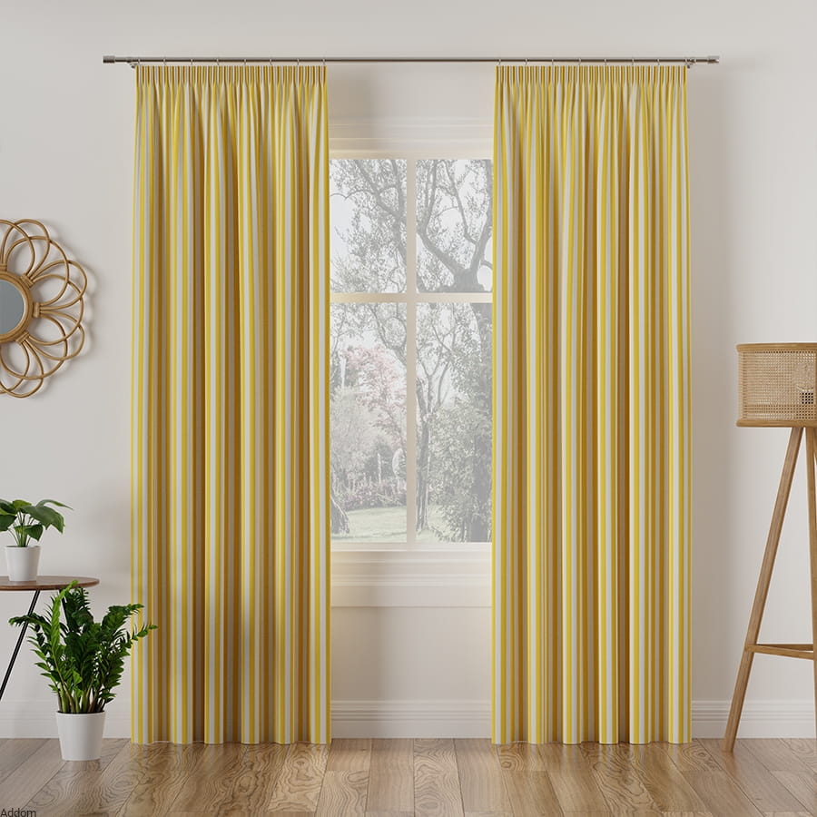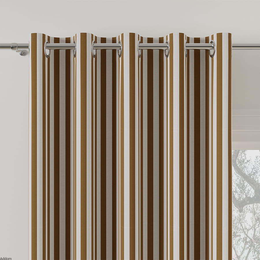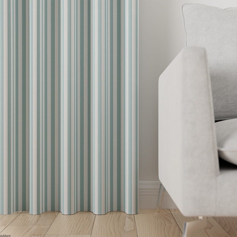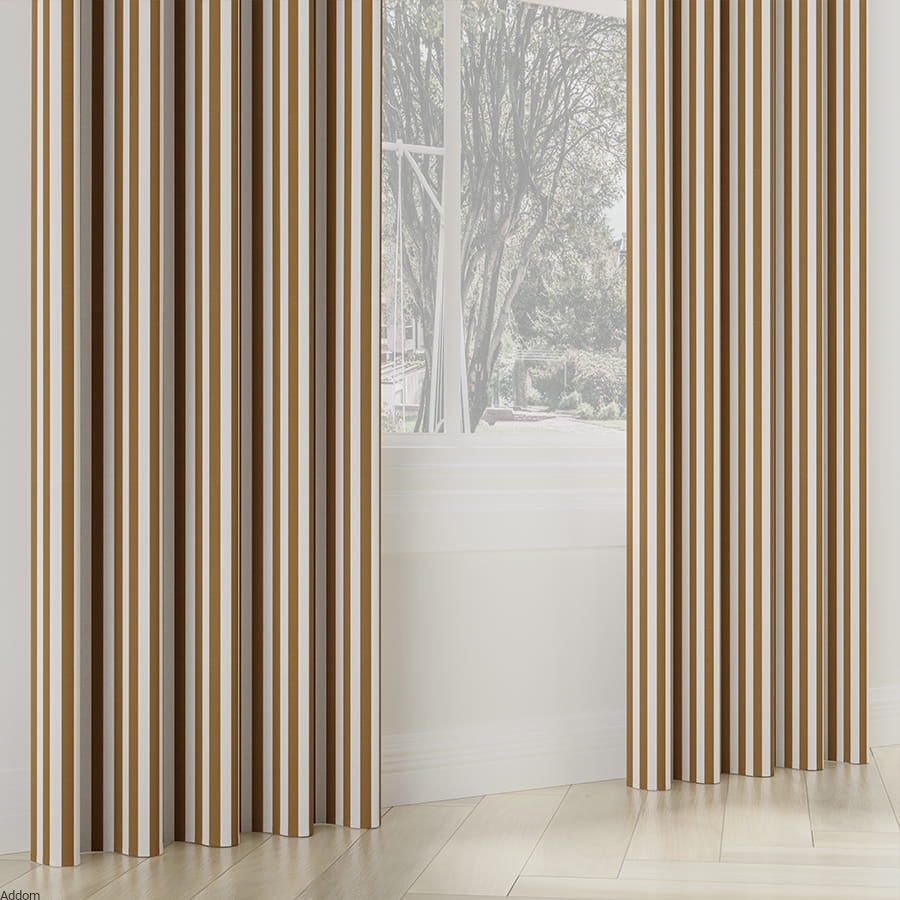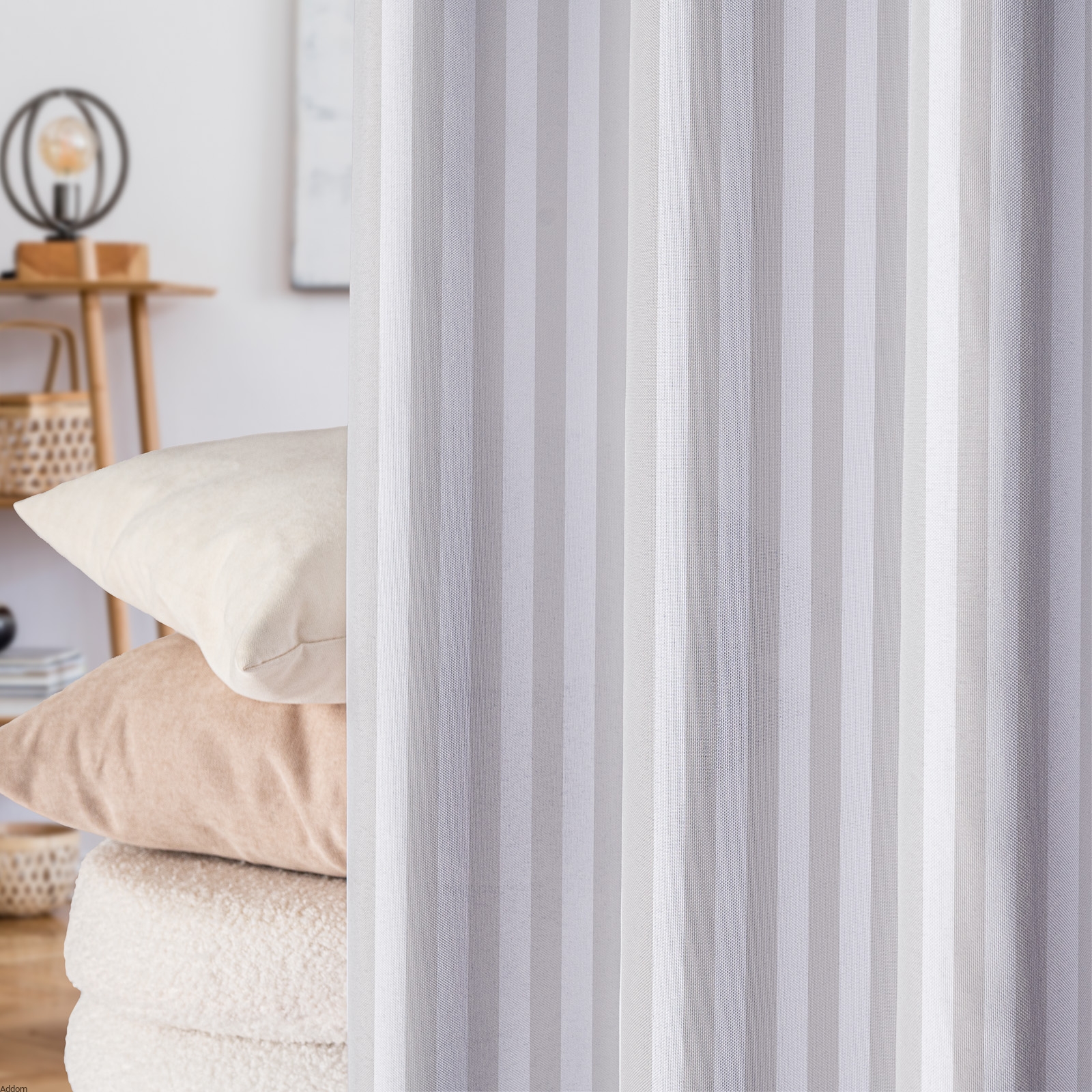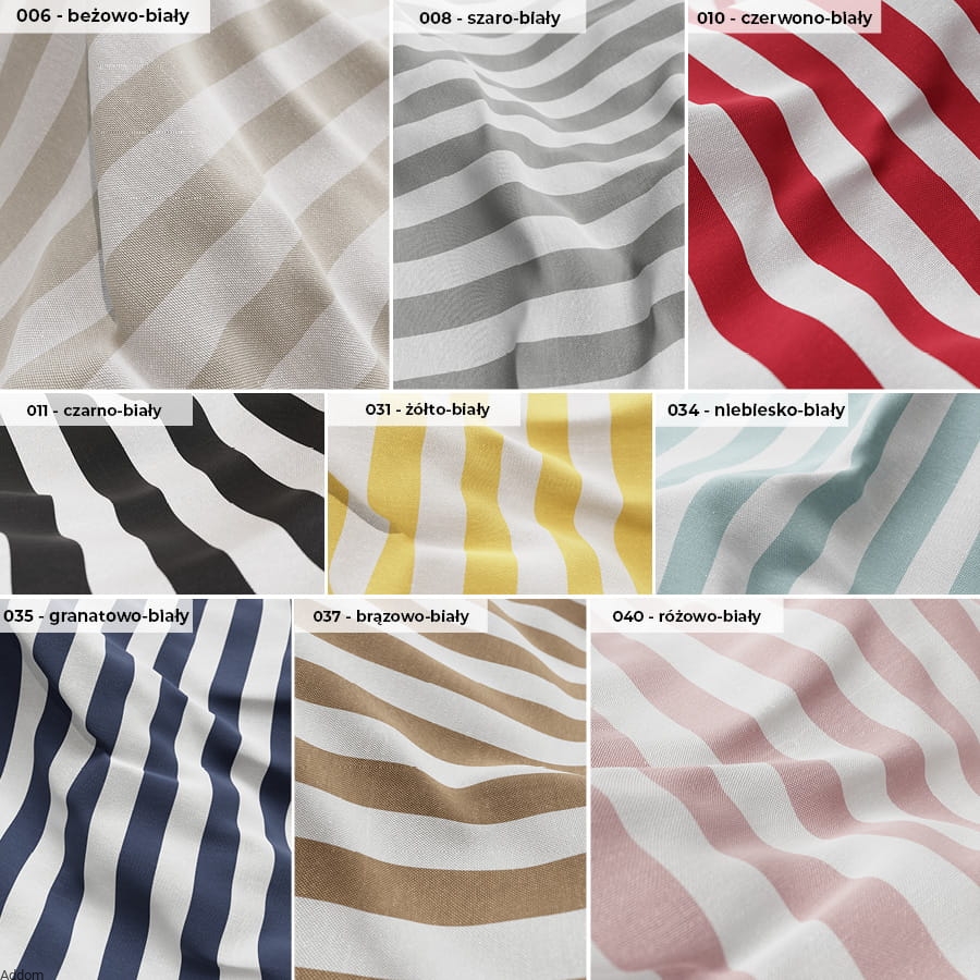 Materiał o wzorze w pasy, które tworzy kolor beżowy, brązowy, granatowy, różowy, żółty, popielaty, miętowy lub zielony, na przemian z tłem w kolorze białym, przy czym biel ta jest bielą naturalną. Tkanina jest dwukolorowa ale kolor jest jednostronny, druga strona bez wzoru. Materiał ten można komponować z wieloma innymi produktami z tej naturalnej serii tkanin.
