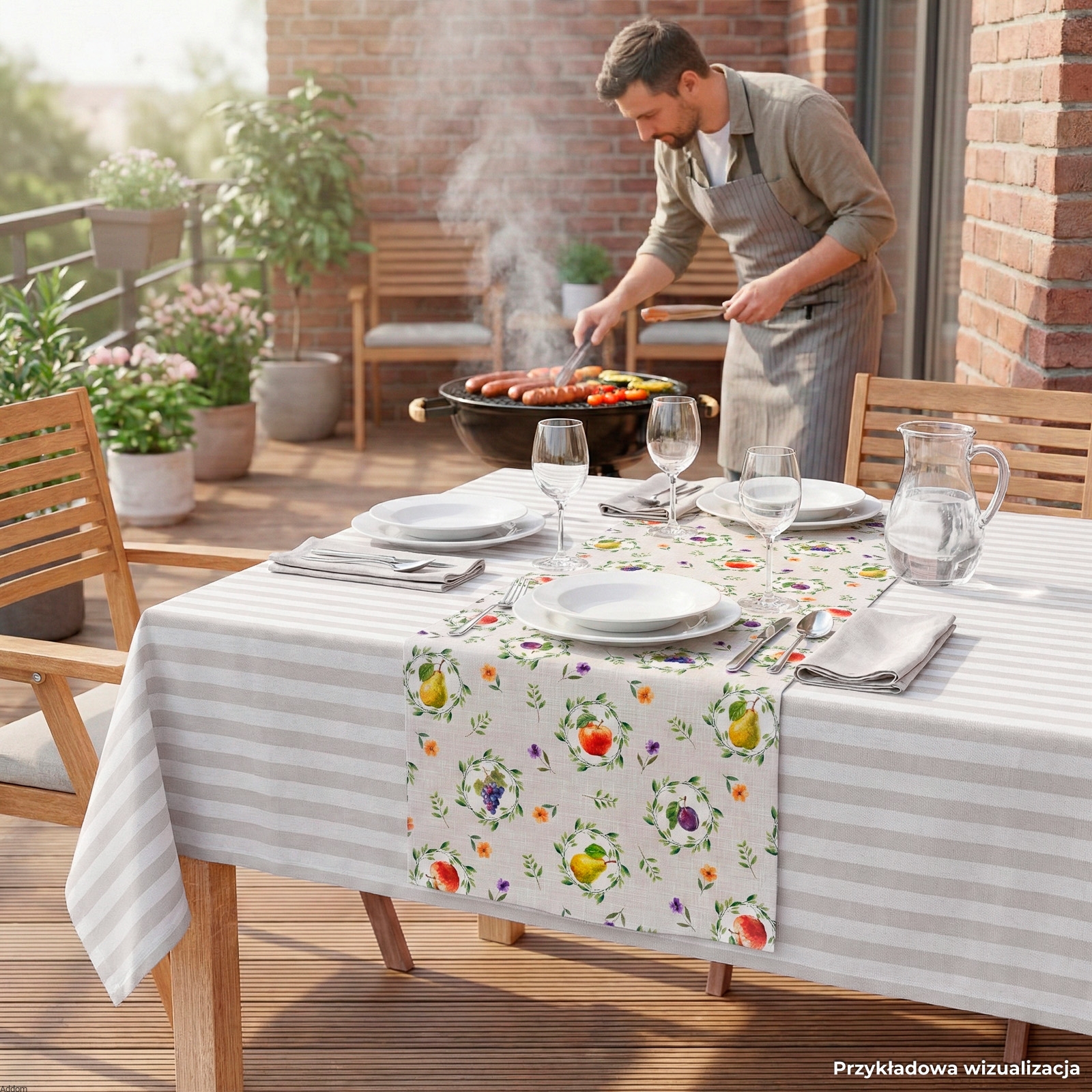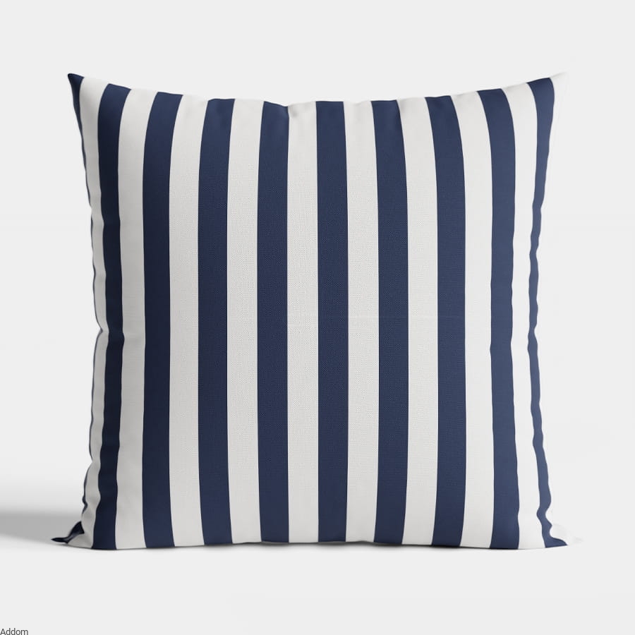Materiał ten ma szerokość 160 cm, co daje szerokie pole do działania, ponadto pionowe pasy umożliwiają łatwe wycinanie tkaniny po linii, ułatwia to również wycinanie wąskich paneli. Ta tkanina dekoracyjna jest poliestrowa, 100% jej składu to bawełna, która dodatkowo pokryta jest substancją uniemożliwiającą wsiąkanie płynów w jej głąb, co oznacza, że nadaj się do zastosowania jako obrusy, materiał obiciowy, sezonowe, elegancki zasłony tarasowe i inne, wymagające tekstylia. Materiał granatowo - biały to marynarskie pasy, co w połączeniu z powłoką wodoodporną może stanowić tkaninę odpowiednią do wyposażenia jachtów.