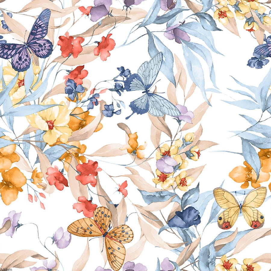 Materiał typu black out, dość gruby, o gramaturze 200 gram nici na metr kwadratowy, przeznaczony na zasłony, obrusy i poszewki, w kolorowe liście i kwiaty. Tkanina bawełniana o szerokości 145 cm. Wzory są nadrukowane tak, że wyglądają jak obraz typu akwarela, czyli farbami wodnymi, z lekkim rozmazaniem artystycznym. W kolorystyce dominuje szeroka gama koloru różowego, beżowego, oranżowego, a farby zlewają się na liściach jakby były malowane akwarelami. Motyw dekoracyjny powtarza się co 50 cm w pionie.