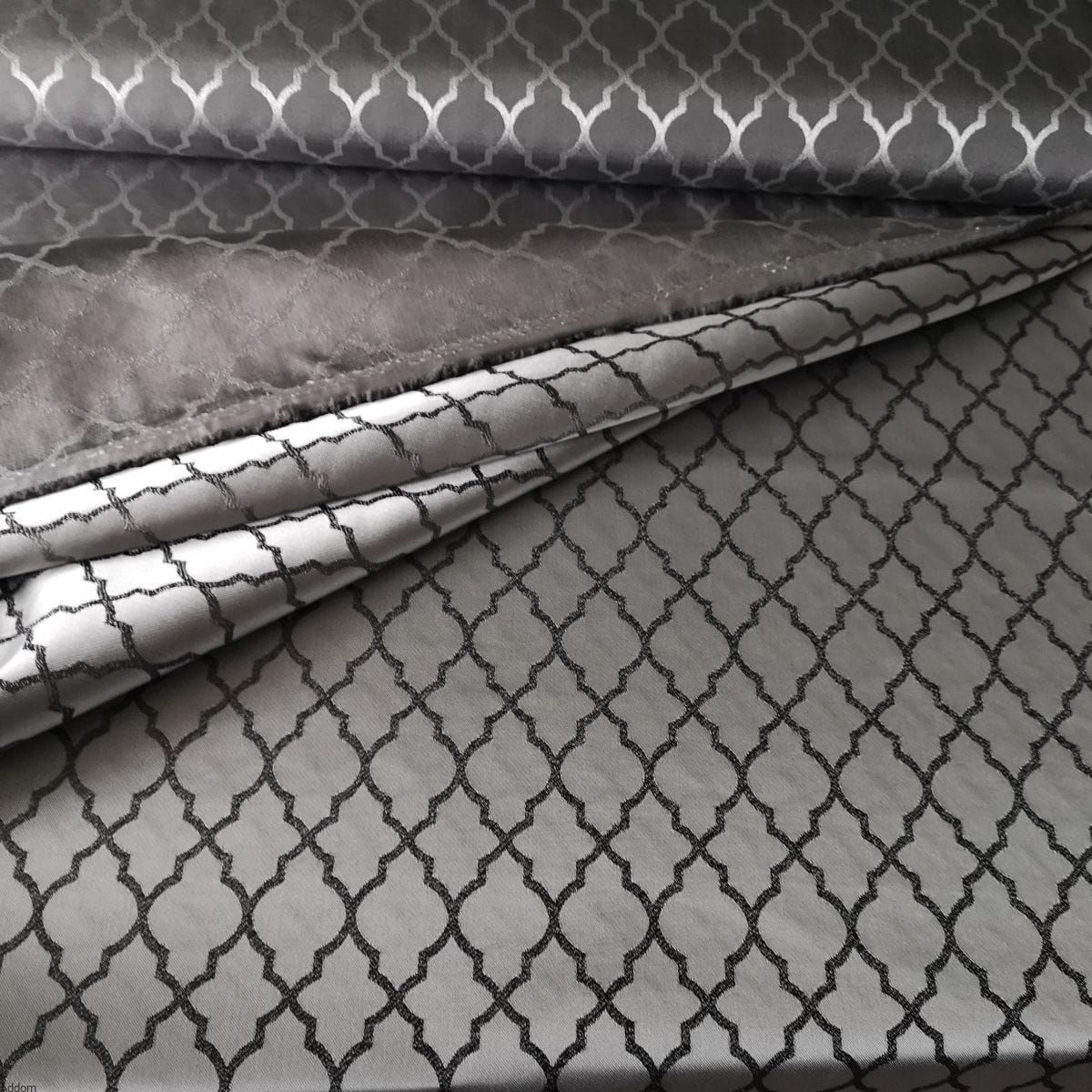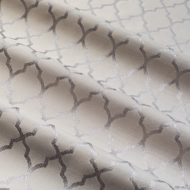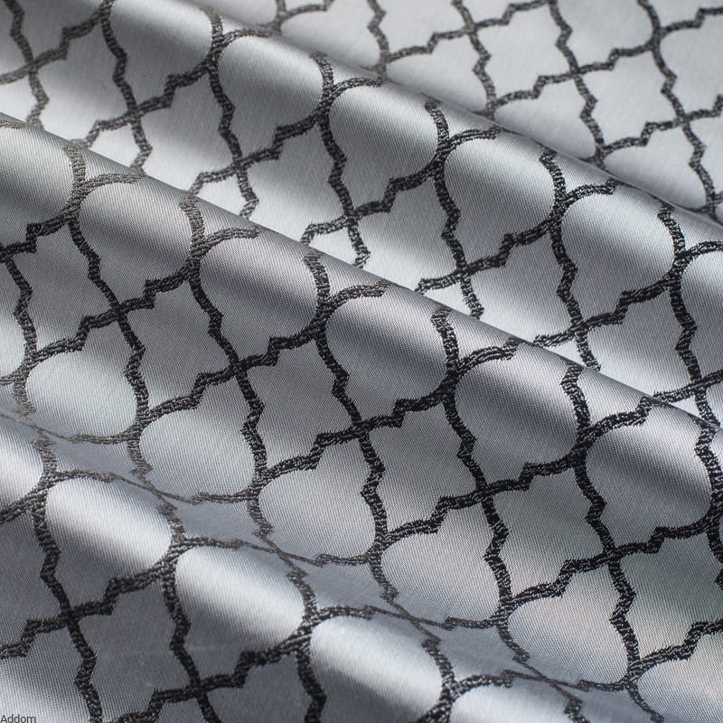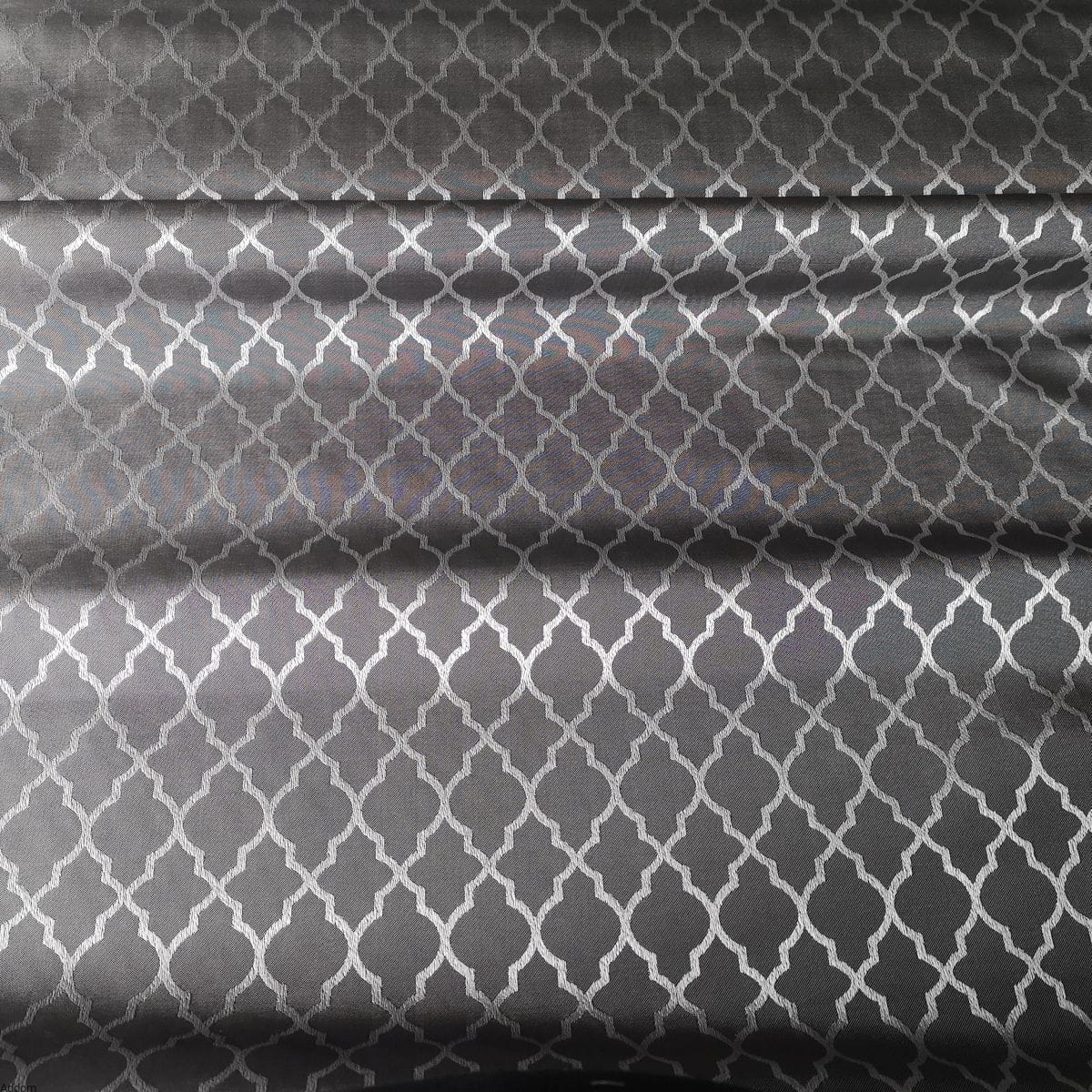 Materiał zasłonowy dwustronny, w którym jedna strona jest negatywem drugiej strony. Materiał dobrze zasłaniający, z połyskiem uwidaczniającym się do światła. Tkanina ta ma 150 cm szerokości, i zdobi ją orientalny wzór, odznaczający się od tła.