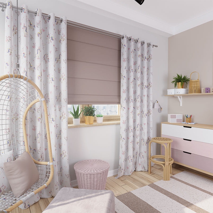 Nie tylko estetyka jest atutem naszego materiału zasłonowego. Jest on również bardzo funkcjonalny – dobrze zaciemnia pomieszczenie, bardzo chroni przed słońcem i zapewnia prywatność. Możliwość prania w pralce ułatwia utrzymanie zasłon w czystości i świeżości. Materiał jest odporny na blaknięcie, dzięki czemu jednorożce zachowają swoje żywe kolory na długo.