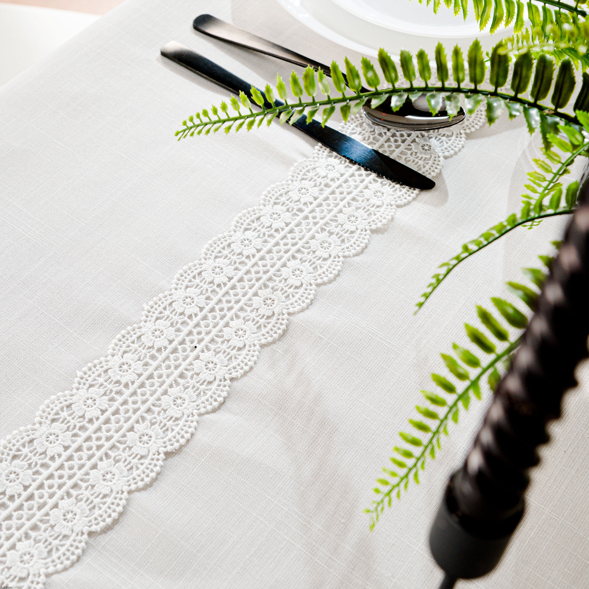 Obrus z naszytą na tkaninę gipiurą