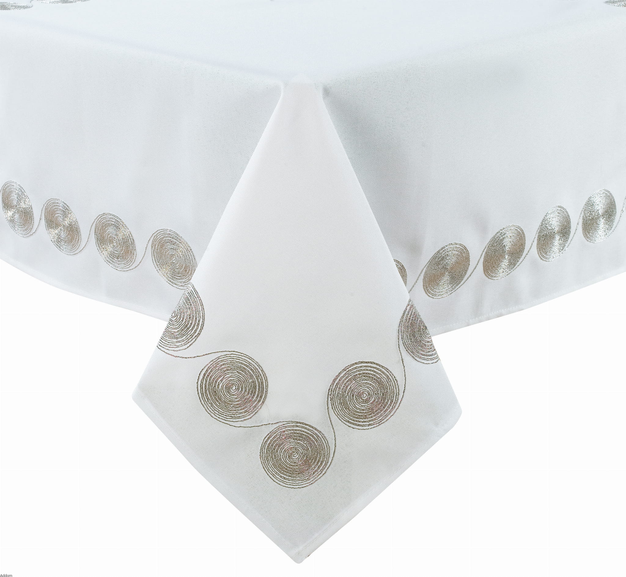 Nieprzeciętne obrusy w kolorze śnieżnej bieli, z klasycznym, gruby wzorem, tworzącym ornament otaczający kwadrat. Haft wykonany złotą lub srebrną, grubą przędzą, układaną w zwoje. Tkaniny, z których są wykonywane obrusy mają wzmocnioną odporność na zaplamienia. Wymiary 85x85 cm.