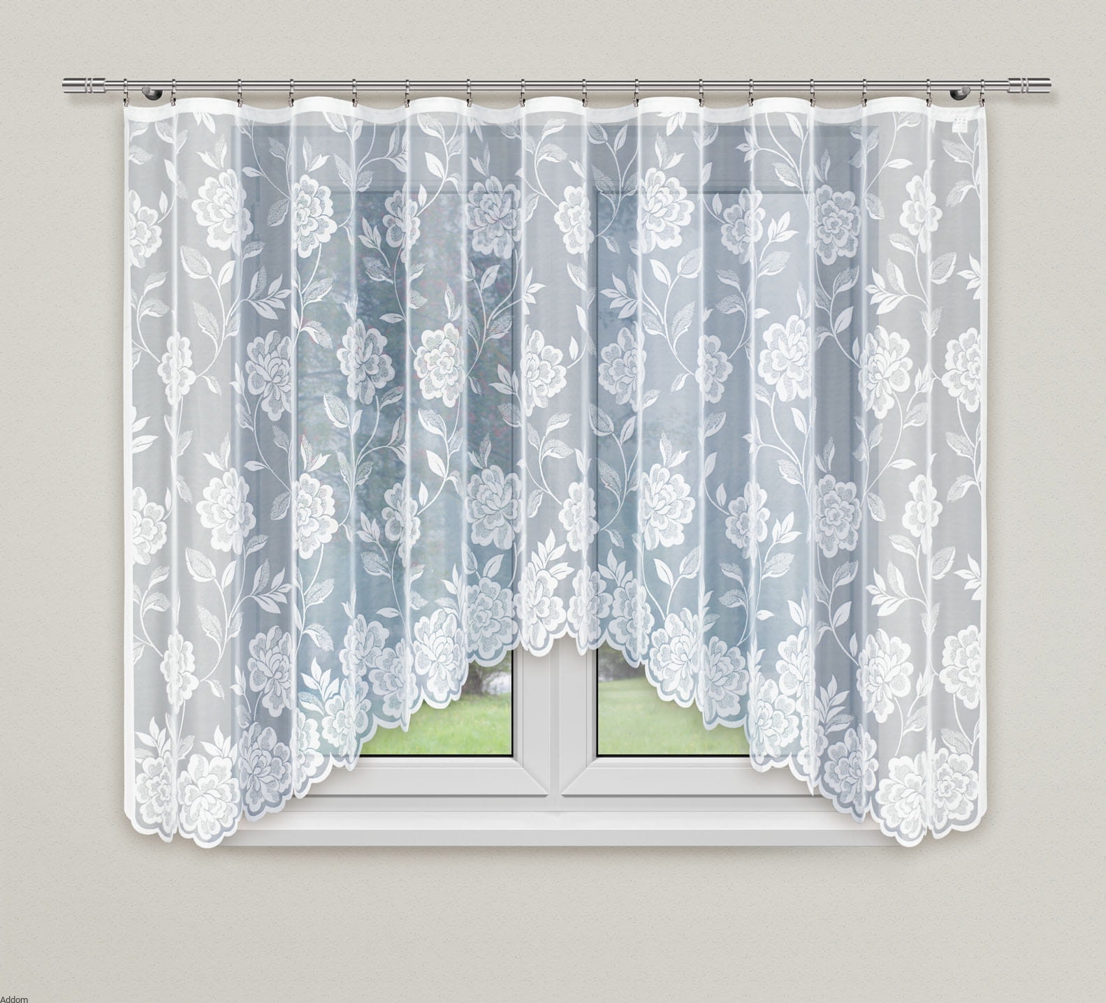 Firanki żakardowe, białe, gotowe do zawieszenia, z taśmą, w róże, to propozycja nie tylko do kuchni, ale także sypialni czy salonu urządzonego w stylu rustykalnym. Nasze firanki w różane kwiaty to kwintesencja uroku i świeżości w każdej kuchni i innym wnętrzu, jaki przyjdzie im dekorować.