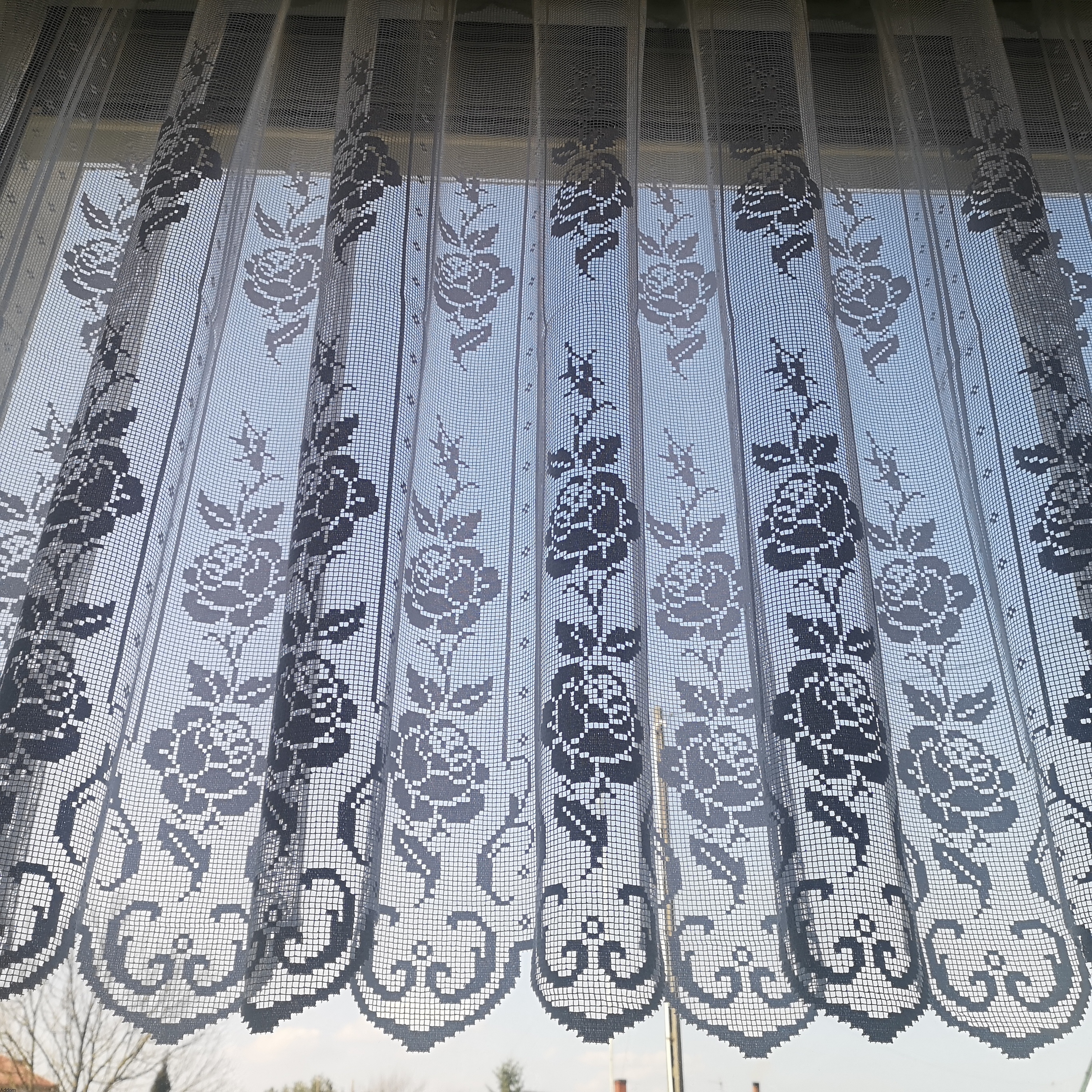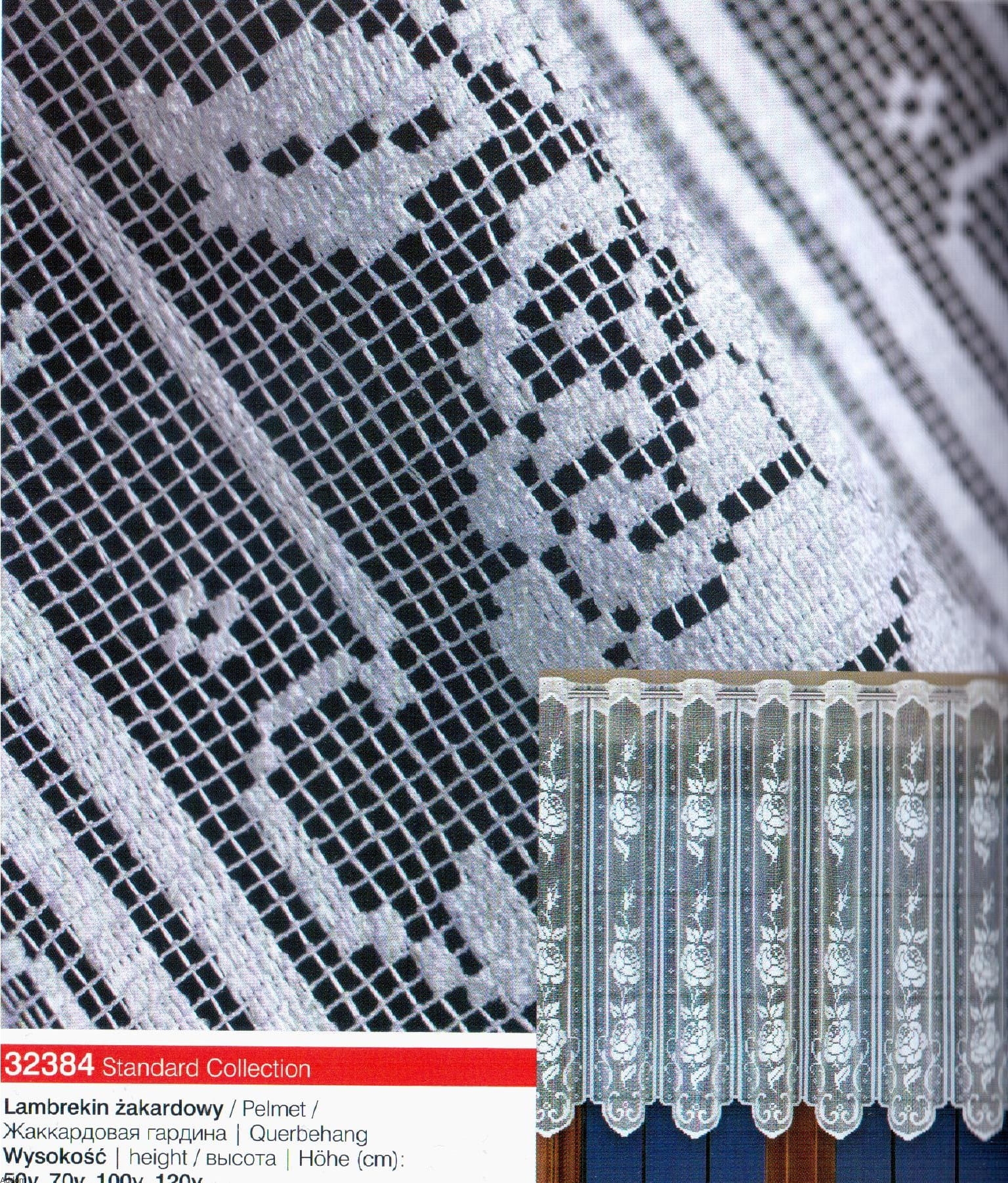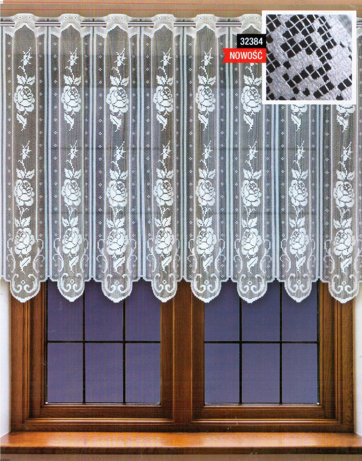 Firany, które produkowane są jako zazdrostki od 50 cm oraz jako firanki krótkie do 120 cm wysokości, o formie panelowej, w róże stylizowane na haft, które wykonane zostały grubą nicią, a wzory są kanciaste i prostolinijne, wygląda jak robótka ręczna. Firany te produkowane są na wysokość od 50 do 120 cm a po przycięciu są gotowe do zawieszenia. Firanki te w każdej wysokości mają górą wykończenie jak zazdrostka, nawet te najwyższe wersje. Najpiękniej wyglądać będą w rustykalnych kuchniach a także w kuchniach w skandynawskim stylu.