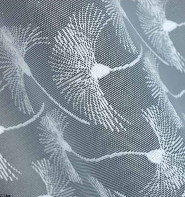 Firany żakardowe w dmuchawce, kaliskie, lekkie, subtelne i piękne. Firany o wysokości 160 cm mają 1 pas motywów roślinnych, którymi są wzorki nasion dmuchawców, ten pas w wersji krótkiej wypada dołem firany, natomiast w wersji o wysokości 250 cm takich pasów jest dwa, pierwszy kończy się na wysokości 160 cm licząc od góry, drugi stanowi wykończenie firany dołem. Wersja krótka i długa powieszone obok siebie spotkają się pasami dmuchawców, można to wykorzystać w przypadku, gdy potrzebne nam są firany balkonowe. Firanki mają wszytą taśmę, która marszczy w stosunku 1:2.