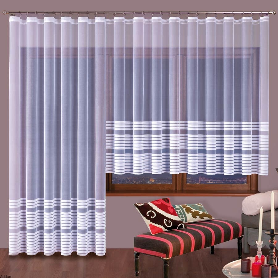 Firany żakardowe z paseczkami dołem