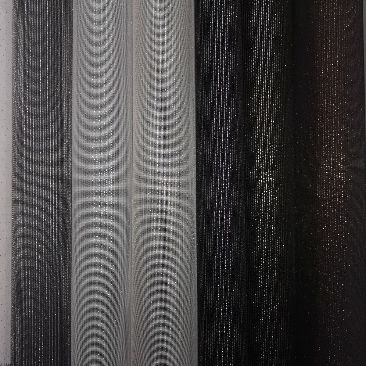 Interesująco mogą wyglądać połączenia różnych kolorów, na przykład biała ze srebrną nitką jako firana, a po bokach jako zasłony wersja grafitowa lub czarna ze srebrną nicią, czy kremowa ze złotym w połączeniu z czarną ze złotym.