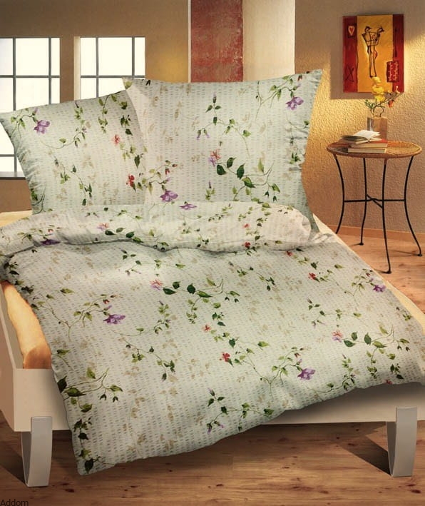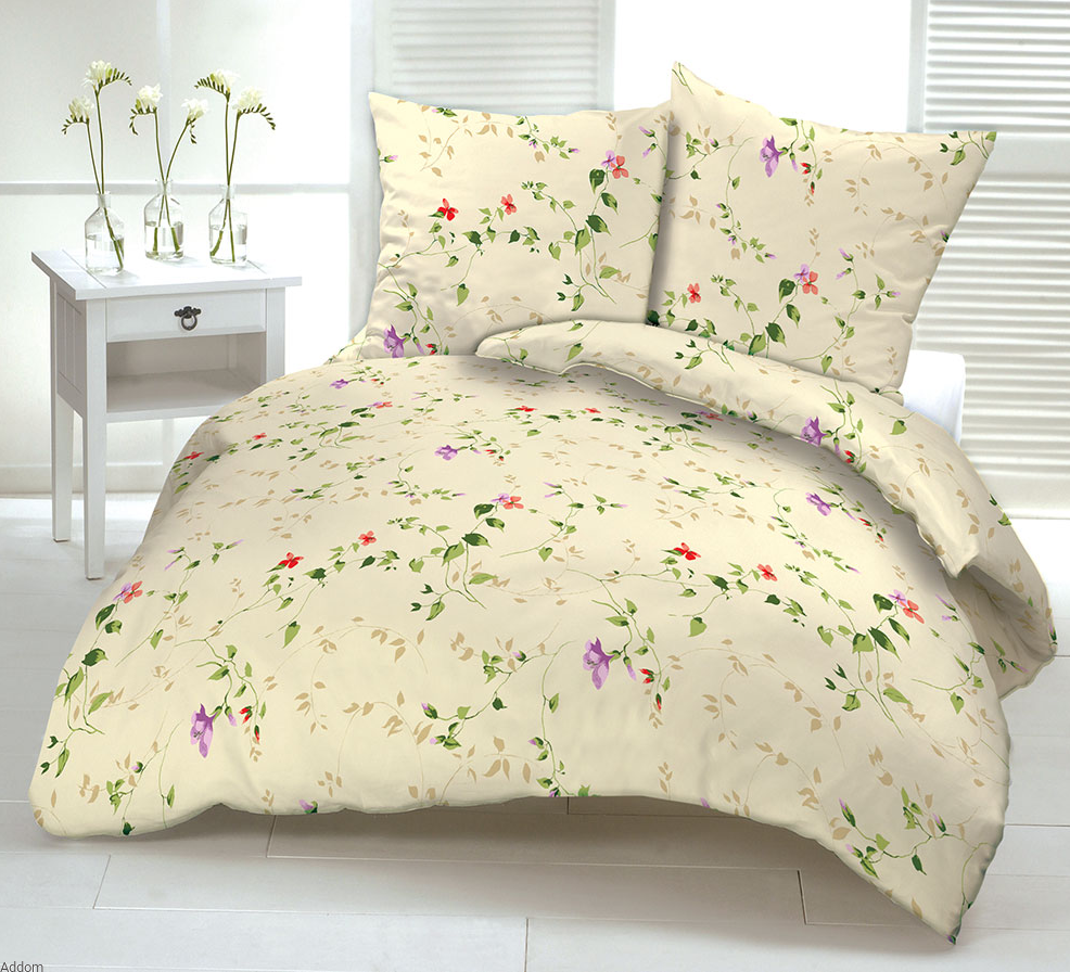 Pościel flanelowa o kremowym tle i wzorze w pnące się drobne roślinki, zwieńczone drobnymi, kolorowymi kwiatami. Pościele z flanelki powstały z myślą o zimowych i jesiennych wieczorach, które są dłuższe i zachęcają do spędzania ich w sypialni. Kładąc się pod pościelą flanelową nie musimy czekać na ogrzanie się pościeli, gdyż flanela dzięki meszkowi jest ciepłą w dotyku. Jasne kolory zapewniają, ze tkanina nie jest zbyt mocno nasączona barwnikami, a to z kolei zapewnia puszystość meszku.