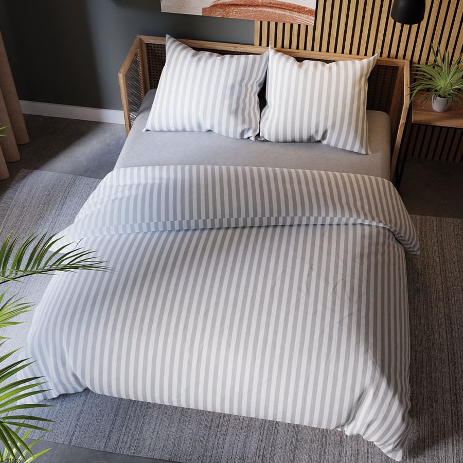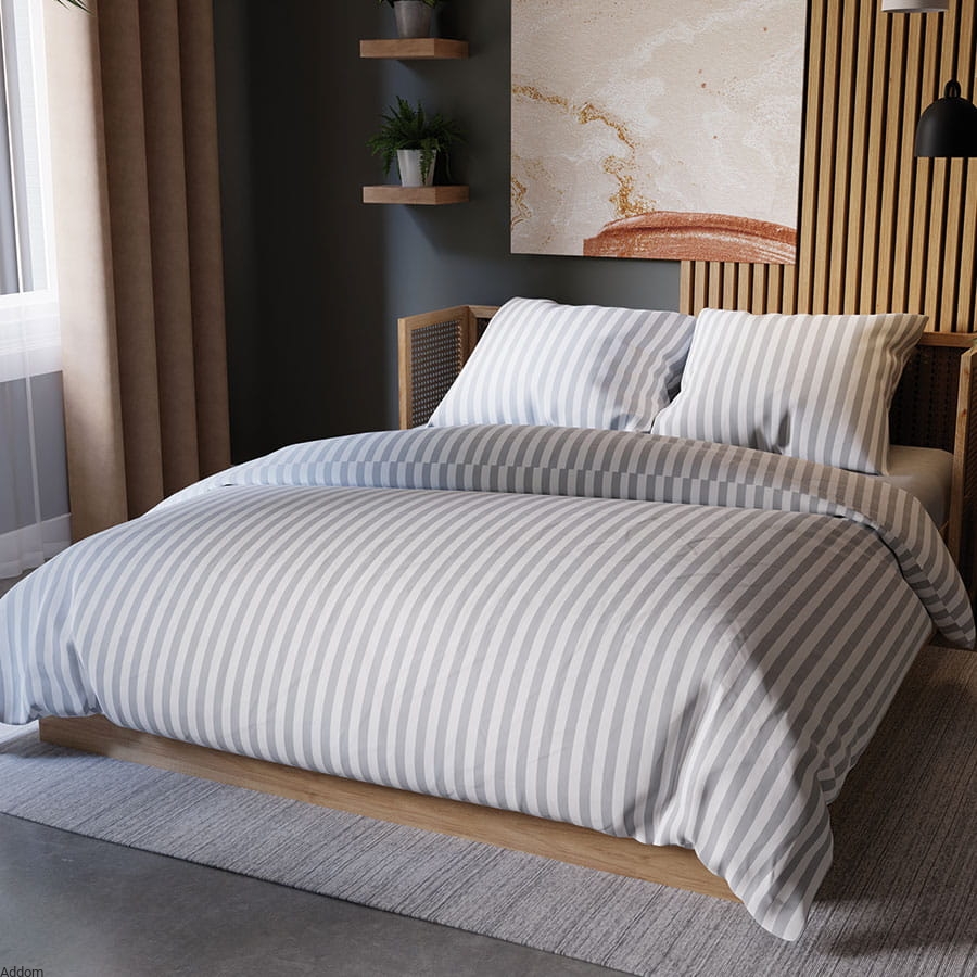 Pościel w pasy to klasyka minimalizmu, która nigdy nie wychodzi z mody. Nasz zestaw pościeli oferuje nowoczesny design, który doskonale wpasuje się w różne style wnętrz, od minimalistycznych po bardziej klasyczne aranżacje. Geometryczny wzór w pasy dodaje subtelnego charakteru i elegancji każdej sypialni, a dostępność w kilku wersjach kolorystycznych pozwala na idealne dopasowanie do indywidualnych preferencji oraz kolorystyki wnętrza.