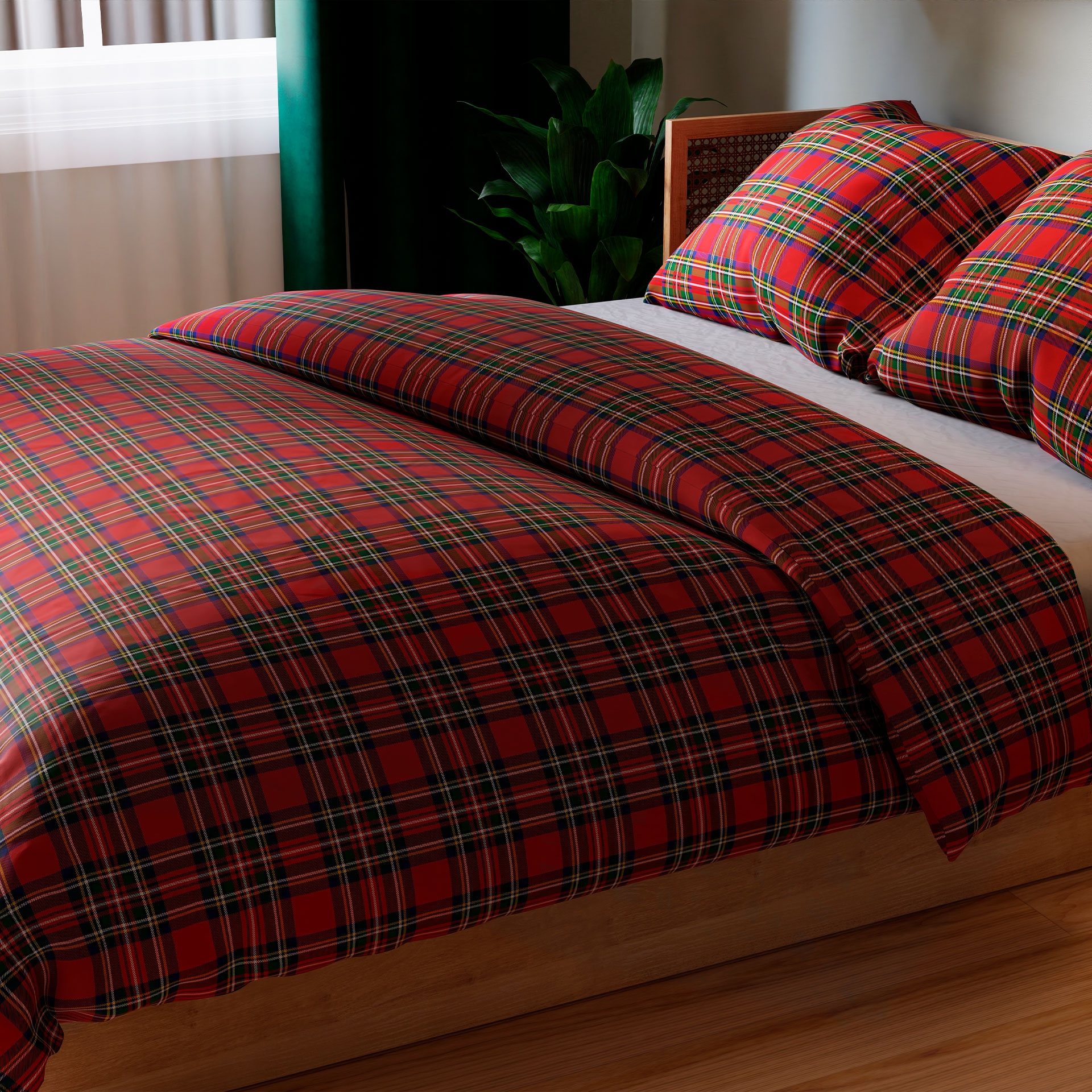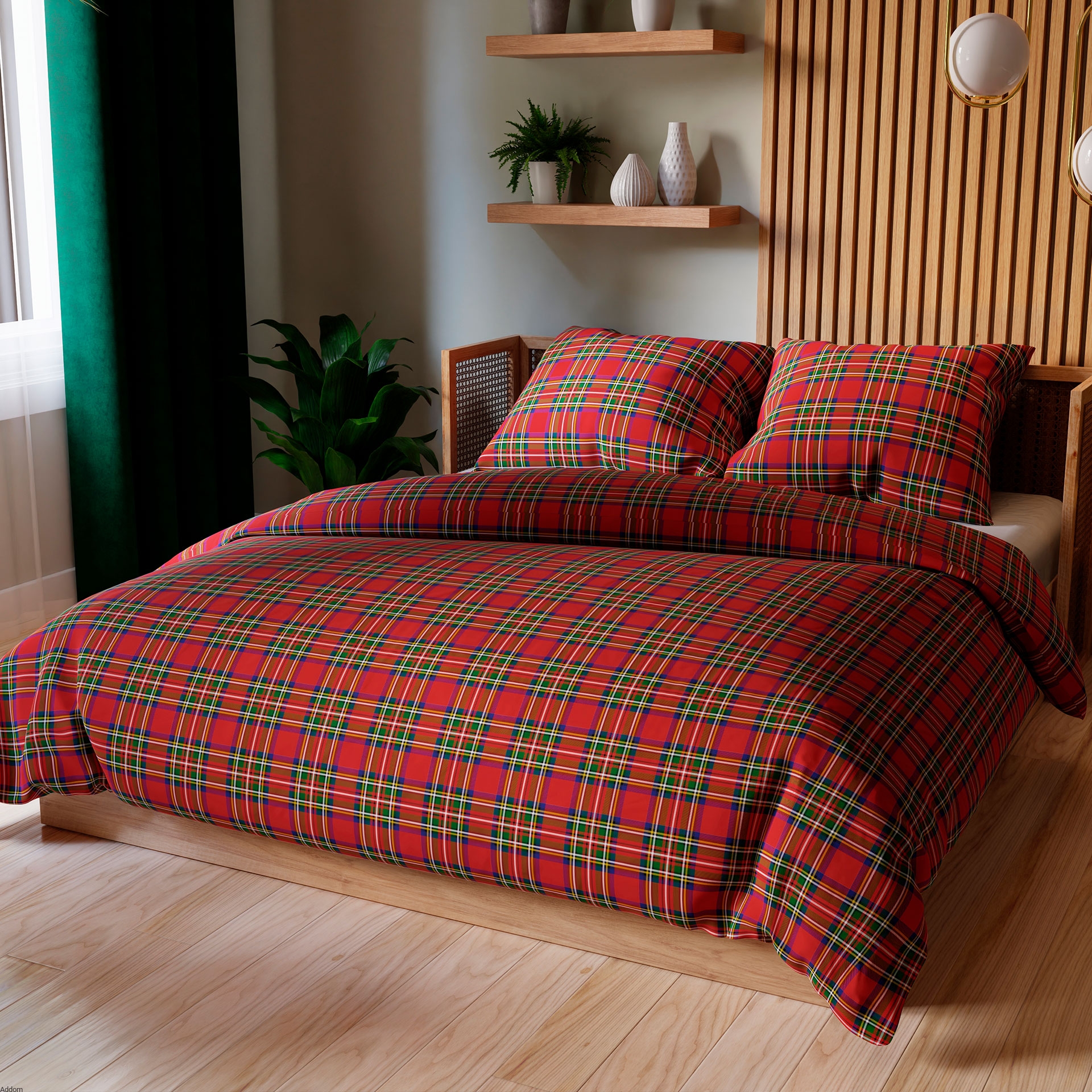 Pościel czerwona w krateczkę na soczystym tle. Komplet tej pościeli jest produkowany z jedwabistej w dotyku polskiej satyny bawełnianej pierwszorzędnej jakości, z włókien wygładzanych. Boki wykończone są żółtymi paseczkami, reszta poszwy 160x200 usłana kwiatowymi wzorami o prostym, dziecinnym stylu, przypominającym styl ludowy