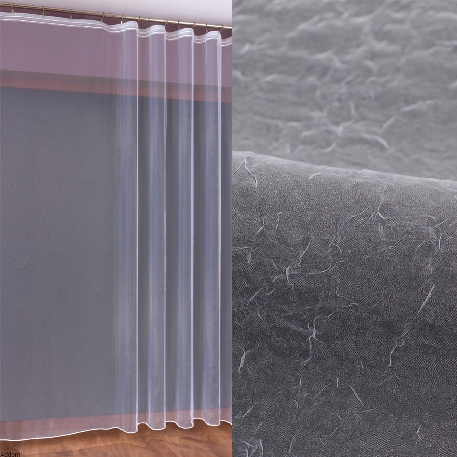 Woal typu kresz jest grubszy od gładkiego woalu, leppiej kryje, doskonale komponuje się zarówno z nowoczesnymi, minimalistycznymi aranżacjami, jak i z bardziej tradycyjnymi wnętrzami. Możesz go z łatwością dopasować do swojego gustu i stylu dekoracyjnego.
