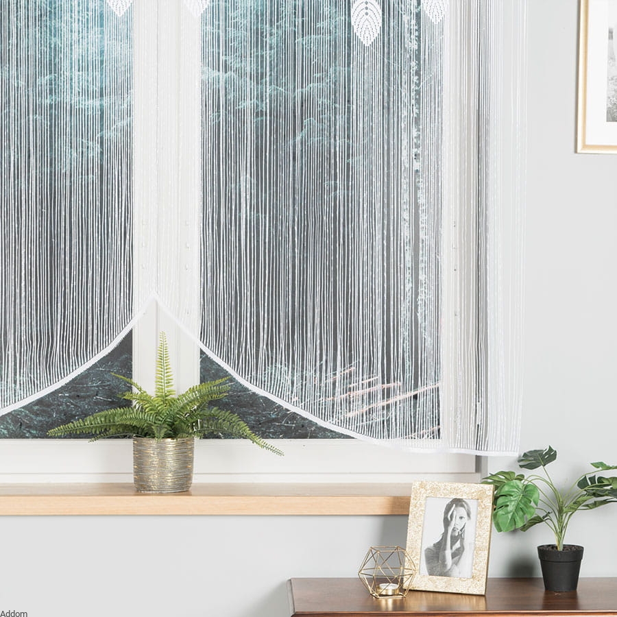 Nasze makarony prezentują piękny wzór w stylu boho - półokrągłe wzory pasować będą do stylizacji z mandalami, serwetami, makramą oraz wzorem etnicznym łapacz snów. Są to wzory etniczne, rustykalne, boho, bardzo modne obecnie i niezobowiązujące. W środku firany znajdują się krótsze makarony, tworzące podkrój, ale można też u nas zakupić te same makarony z prostym dołem.