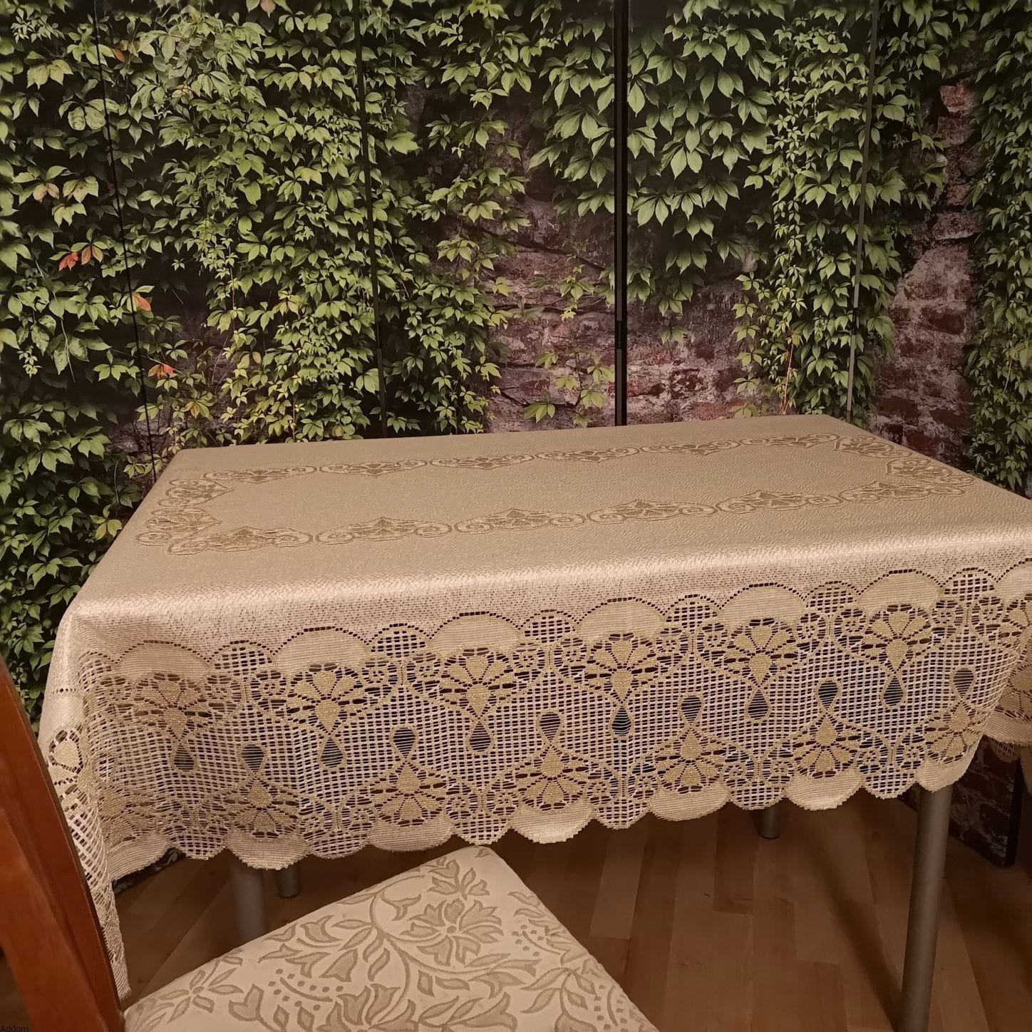 Złoty obrus żakardowy w kwiaty