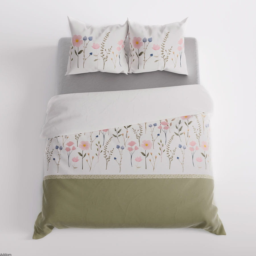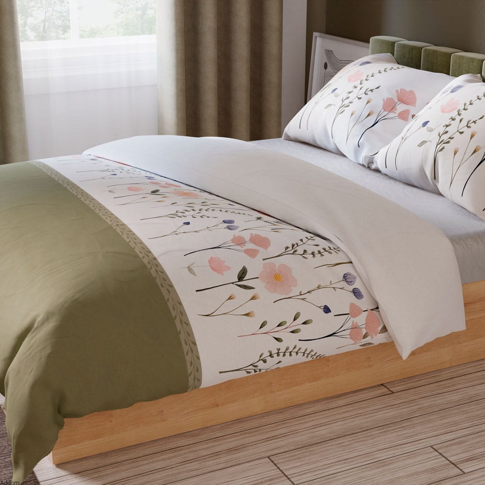 Pościel satyna bawełniana w oliwkowe kwiaty