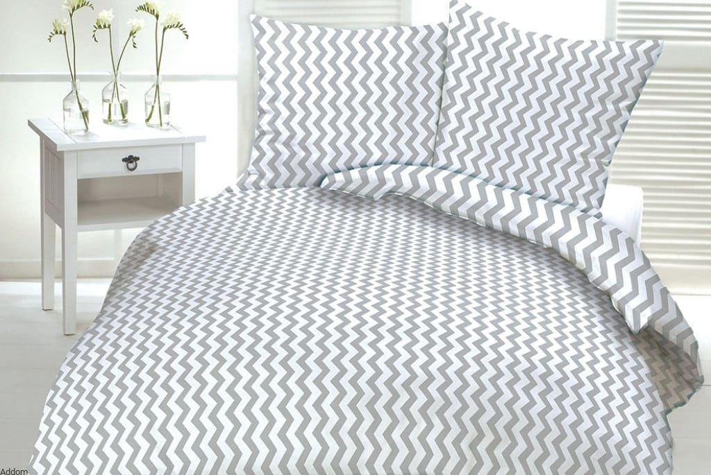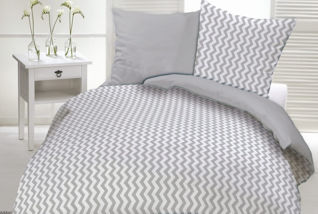 Pościel dostępna w wersji jasnej lub dwustronnej, jasnej w połączeniu z szarym spodem.