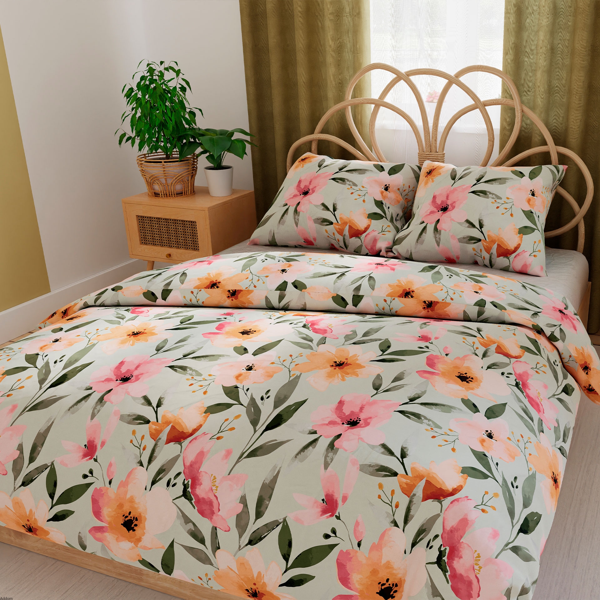 Wzór w duże, barwne kwiaty nadaje sypialni świeżości i radosnego charakteru, a jednocześnie wprowadza do wnętrza przytulną atmosferę. Starannie dobrane kolory i precyzyjny nadruk sprawiają, że pościel wygląda elegancko i zachowuje intensywność barw nawet po wielu praniach.