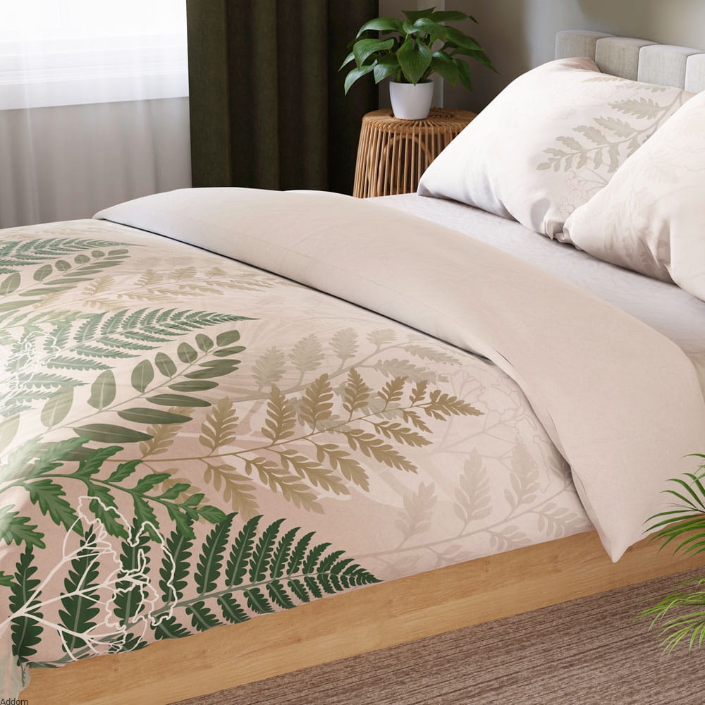 Motyw paprotek wprowadza do wnętrza harmonijną atmosferę inspirowaną naturą. Roślinne wzory nadają pościeli świeżości i sprawiają, że świetnie komponuje się z wnętrzami w stylu skandynawskim, boho czy klasycznym. Naturalna kolorystyka wzoru doskonale współgra zarówno z jasnymi, jak i ciemniejszymi aranżacjami sypialni, nadając im subtelnej elegancji.