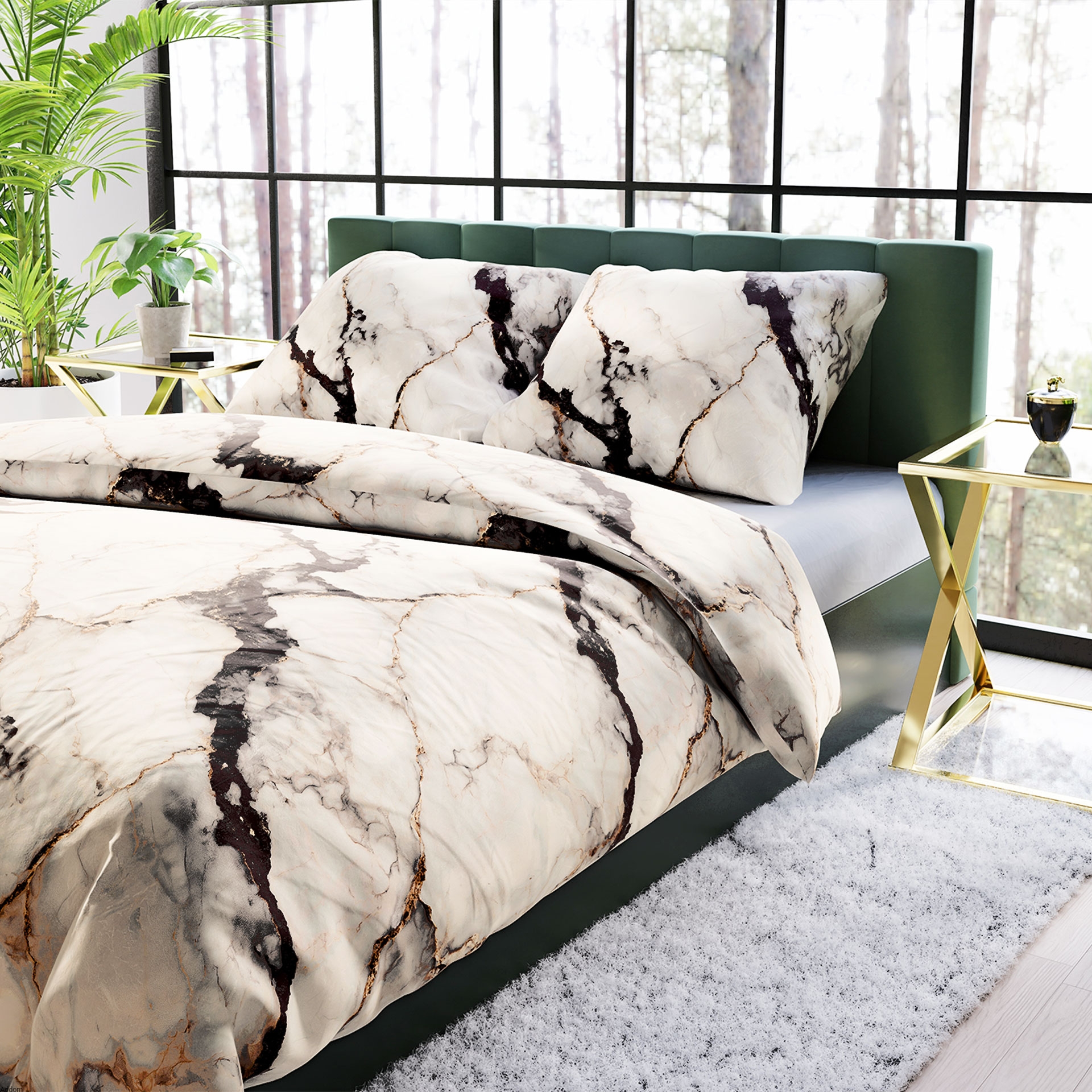 Pościel z satyny bawełnianej o marmurowym wzorze to propozycja dla osób ceniących elegancję i naturalistyczny styl w sypialni. Komplet wykonany został ze 100% naturalnej bawełny, zachwyca subtelnym połyskiem satyny oraz wyjątkową miękkością, która otula ciało i zapewnia komfortowy sen.